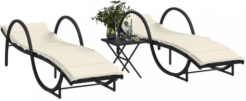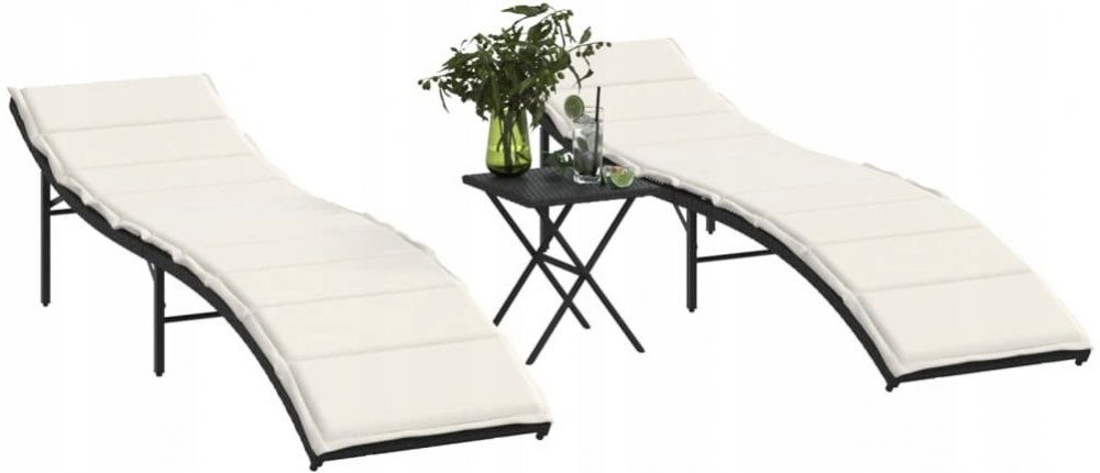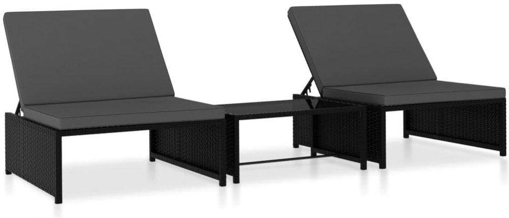 vidaXL lehátka 2 ks se stolkem polyratan černá 47402