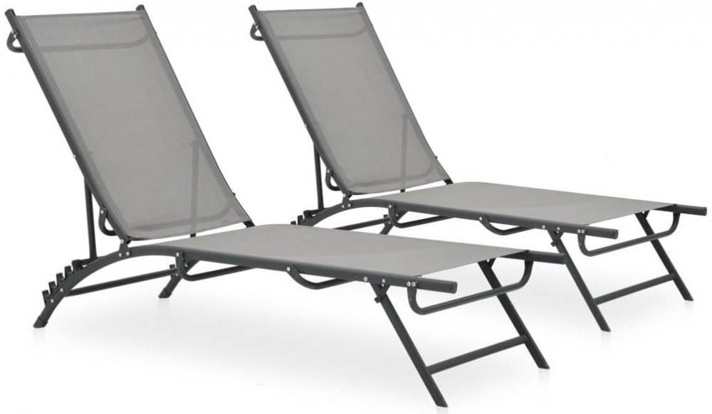 Tento set opalovacích lehátek spojuje styl s funkčností a je to skvělý doplněk pro vaši zahradu, terasu nebo dvorek. Opalovací lehátko má rám z práškově lakované oceli, je proto velice stabilní a má dlouhou životnost. Pevná textilenová tkanina je voděodolná a zaručuje snadné čištění. Opěradlo lze upravovat tak, abyste si vždy našli tu nejpohodlnější polohu. Sestavení setu je snadné.