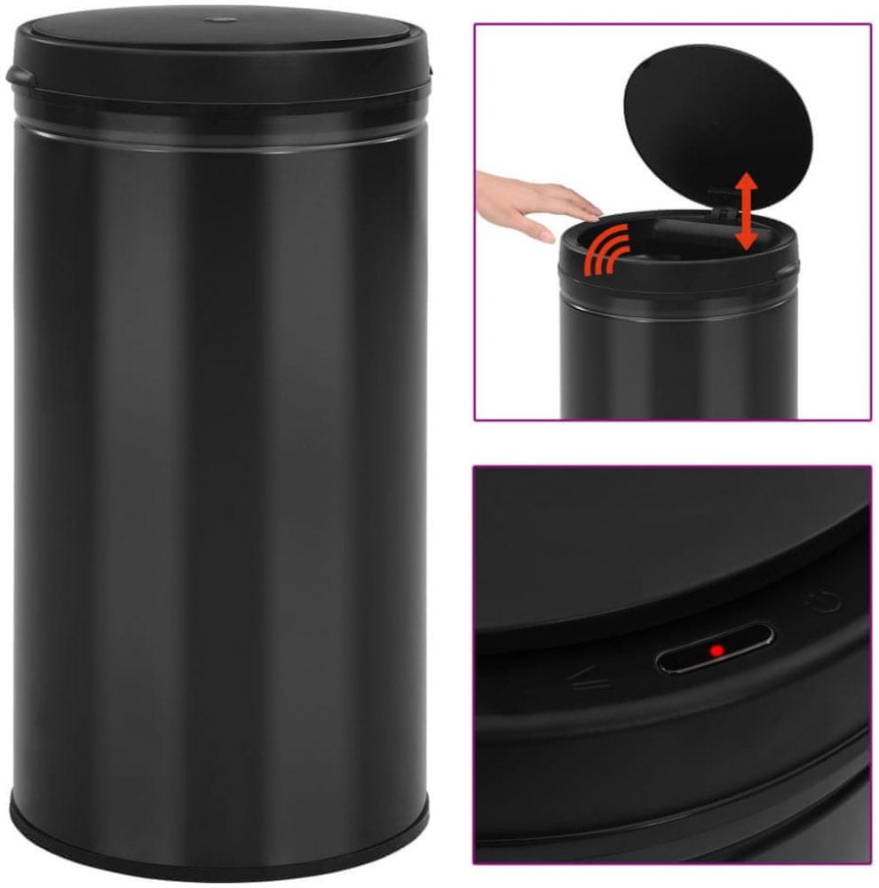 černé kovové vidaXL klasické koše 1 se senzorem 4.65 kg 60.0 l 36.6 cm 66.0 cm