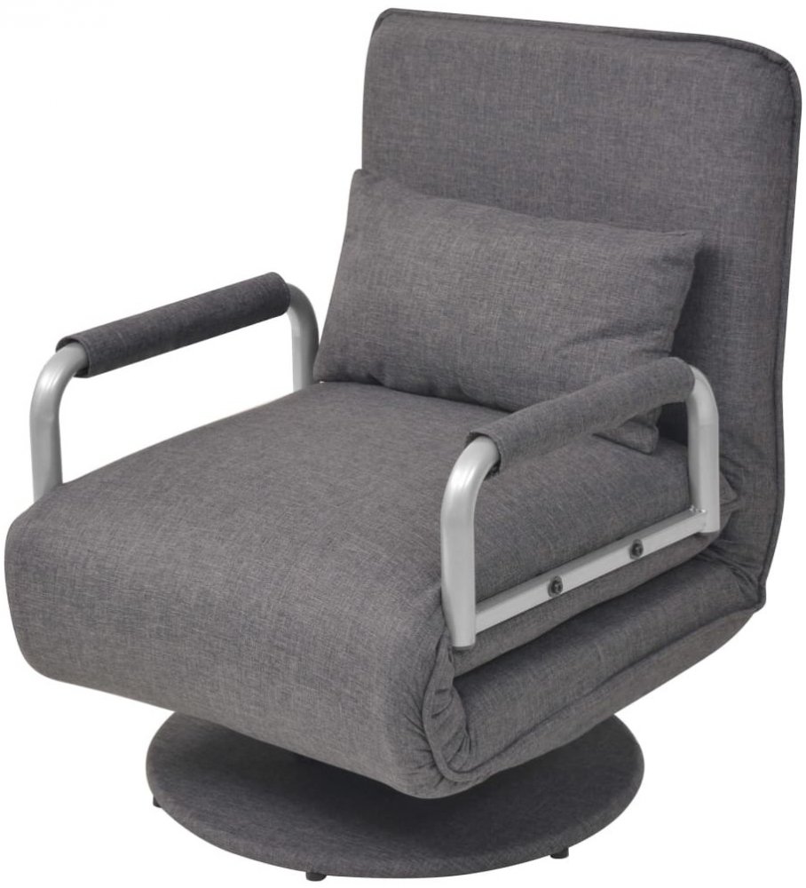 Toto rozkládací křeslo, které v sobě spojuje pohodlí a praktičnost, bude pro vás skvělou volbou díky mnoha možnostem nastavení polohy pro sezení i ležení. Otočná židle se dá snadno proměnit v lenošku, polohovatelné křeslo nebo válendu, což je ideální, pokud trpíte nedostatkem místa, anebo pokud máte občas nečekané nocležníky.