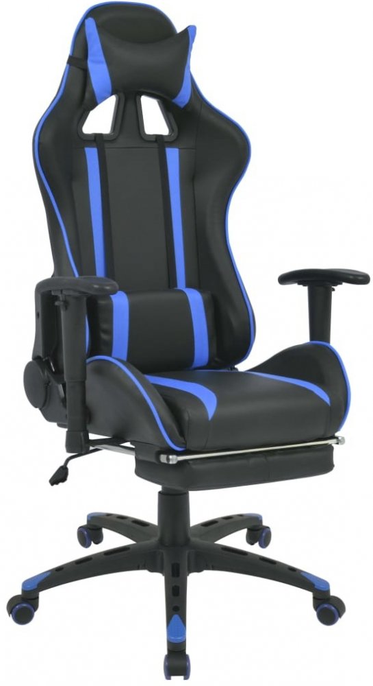 Ať už doma, nebo v práci: toto pohodlné kancelářské polohovací křeslo ve sportovním designu je skvělým doplňkem každé místnosti! Toto kancelářské křeslo je ergonomicky navrženo a čalouněno kvalitní koženkou. Sedák a opěrák jsou hustě polstrované, aby vám poskytly maximální pohodlí během náročného pracovního dne. Přiložené polštářky na pánev a krk navíc zajišťují pohodlné sezení. Díky masivnímu dřevěnému a ocelovému rámu a nylonové základně je tato herní kancelářská židle mimořádně robustní a odolná. Má 5 hladce se pohybujících koleček, takže ji můžete snadno umístit, kam chcete. Výšku židle lze snadno nastavit pomocí pneumatického zdvihu. Je také plně polohovatelná, takže můžete vždy sedět v pro vás nejpohodlnější poloze. Je také vybavena výsuvnou opěrkou nohou ukrytou pod sedákem. Jeho montáž je velmi snadná.Barva: modrá a černáMateriál: čalounění z Imitace kůže + dřevěný a ocelový rám + nylonová základnaRozměry (ve vzpřímené poloze): 70 x 71 x (126 - 136) cm (š x h x v)Celková délka (v poloze na ležení): 140 cmRozměr sedáku: 41 x 43 cm (š x h)Výška sedadla od podlahy: 44-52 cmVýška područky od sedadla: 17-25 cmVýška sedadla nastavitelná pomocí pneumatického zdvihuPodručky jsou úhlově a výškově nastavitelnéS polštářem pro krční a bederní oblastS výsuvnou opěrkou nohouS 5 pružnými nylonovými kolečkyOtáčení o 360 stupňůSnadná konečná montážMateriál: bavlna: 10 %, polyester: 40 %, polyuretan: 35 %, PVC: 15 % Barva: modrá a černáMateriál: čalounění z Imitace kůže + dřevěný a ocelový rám + nylonová základnaRozměry (ve svislé poloze): 70 x 71 x (126 - 136) cm (š x h x v)Celková délka (v poloze na ležení): 140 cmVelikost sedáku: 41 x 43 cm (š x h)Výška sedadla od podlahy: 44-52 cmVýška područek od sedadla: 17-25 cmVýška sedadla nastavitelná pomocí pneumatického zdvihuPodručky jsou úhlově a výškově nastavitelnéS polštářem pro krční a bederní oblastS výsuvnou opěrkou nohouS 5 pružnými nylonovými kolečkyOtáčení o 360 stupňůSnadná konečná montážMateriál: bavlna: 10 %, polyester: 40 %, polyuretan: 35 %, PVC: 15 % 203,09