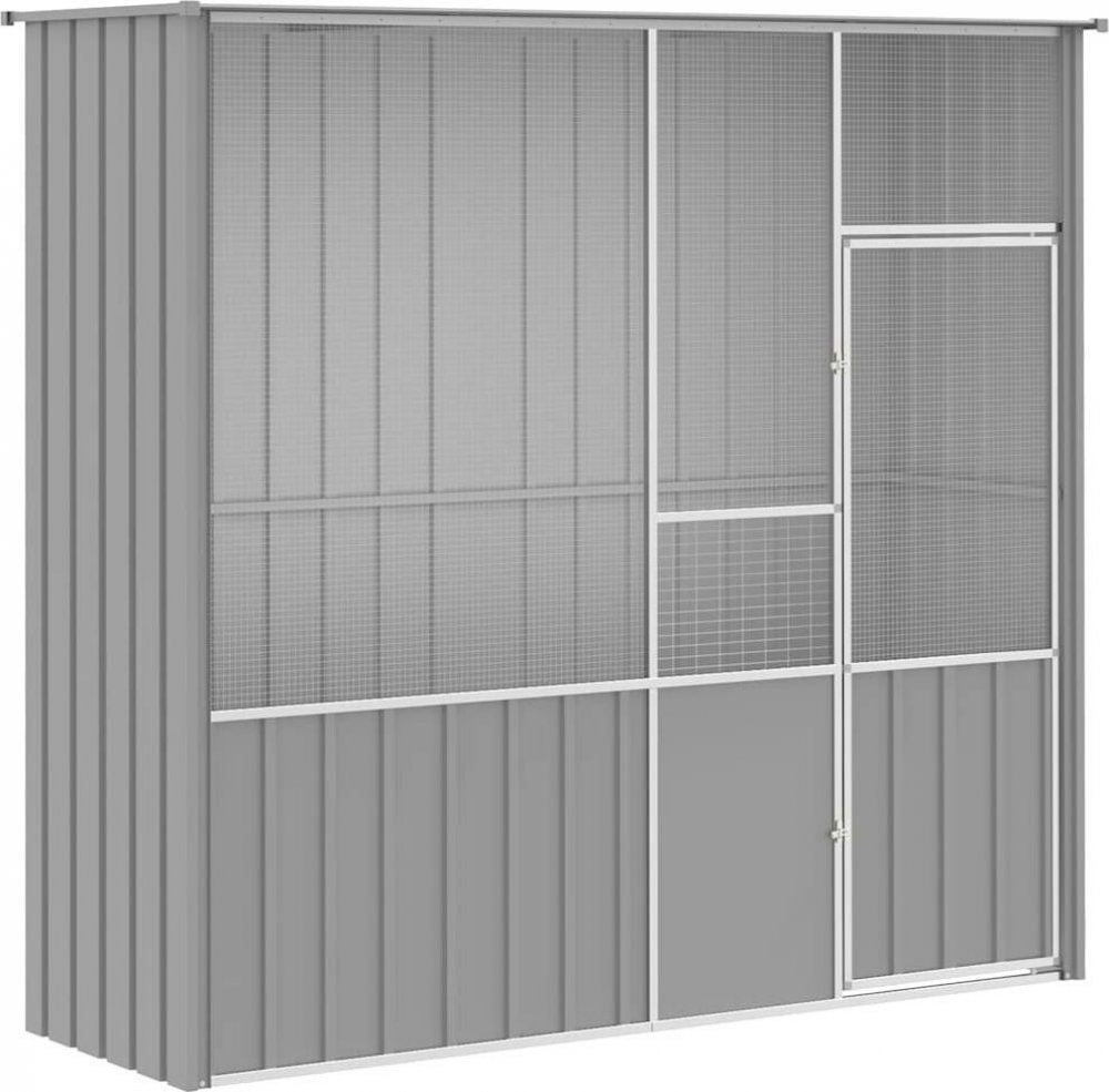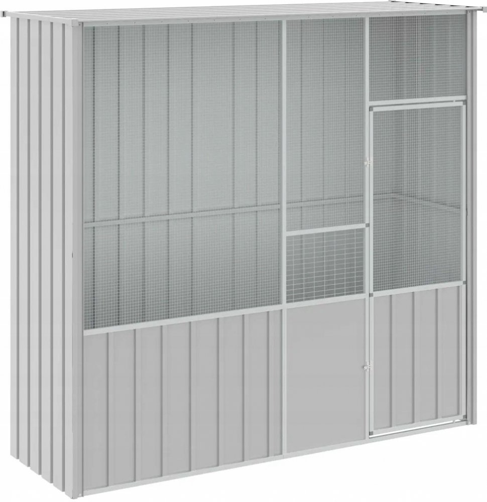 Tato ptačí klec nabízí vašim ptákům útulné a pohodlné místo k bezpečnému létání a hraní.Robustní konstrukce: Díky robustní konstrukci z pozinkované oceli je tato ptačí budka odolná a vyrobená tak, aby vydržela dlouho.Svařovaná ohrádka: Voliéra je vybavena svařovanou ohrádkou, která zabraňuje neplechám a nečekaným nehodám. Umožňuje také každodenní pozorování ptáků a zaručuje jim široké zorné pole a dostatek čerstvého vzduchu.Velkorysý výběhový prostor: Voliéra nabízí vašim ptákům dostatečný výběhový prostor, kde mohou běhat, hrát si a létat. Je vhodná i pro další drobná zvířata, jako jsou králíci, kachny, slepice, husy atd.Dodatečná bezpečnost: Křídlová dvířka se systémem uzamykatelných západek klece pro andulky poskytují dodatečnou bezpečnost a ochranu pro vaše ptáky.Dobré vědět: Psí budka je vybavena speciálním systémem, který je vhodný pro chov ptáků:Abyste předešli škodám způsobeným silným nánosem sněhu, doporučujeme v zimě pravidelně čistit střechu.Barva: šedáMateriál: pozinkovaná ocelRozměry: 215 x 78 x 200 cm (š x h x v)Rozměry domku: 207 x 68 x 200 cm (š x h x v)Rozměry branky: 57 x 160 cm (D x Š)Velikost oka: 12,7 x 12,7 mmNutná montáž: Ano