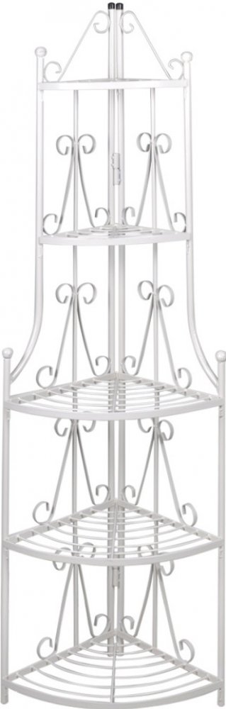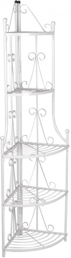 Tento bílý kovový rohový stojan na květiny se vzorem, je ideální volbou k vystavování vašich rostlin a květin. Bude středem pozornosti v každé zahradě, terase nebo i doma.Pěti-policový stojan má výšku 160 cm a perfektně se hodí na umístění do rohů. Je vysoce odolný, jelikož je vyroben z vysoce kvalitní oceli a je pokryt práškovým lakem čímž velmi dobře odolává korozi, což zvyšuje jeho životnost.
