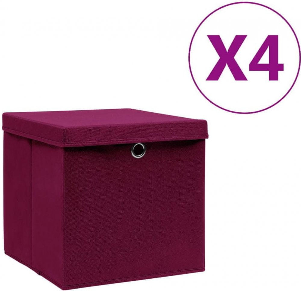 Tyto stylové skládací úložné boxy s víky se dokonale hodí téměř na každou polici. Boxy jsou vyrobené z netkané textilie, která je nejen nesmírně odolná, ale také šetrná k životnímu prostředí. Každý box nabízí spoustu místa k ukládání šátků, ponožek, spodního prádla apod. Když je zrovna nepoužíváte, dají se úložné boxy snadno složit, aby vám zbytečně nepřekážely. Každý z nich je opatřený kovovým očkem, který jednak usnadňuje jeho vytažení ze skříně a jednak mu dodává elegantní šmrnc. Všechny boxy mají také víka, aby vaše věci zůstaly čisté a neprášilo se na ně.Barva: tmavě červenáMateriál: netkaná textilieRozměry: 28 x 28 x 28 cm (D x Š x V)SkládacíBalení obsahuje:4 x úložný box4 x víko