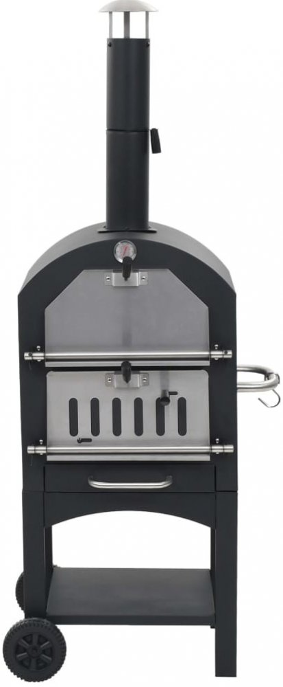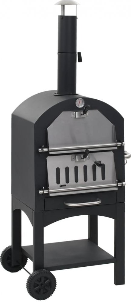 Pec je vyrobena z vysoce kvalitní oceli s práškovým nástřikem a je vysoce odolná a bytelná. Rošt můžete vytáhnout, takže jej lze snadno a rychle vyčistit. Praktická polička pod pecí dobře poslouží jako odkládací prostor na rukavice a další potřeby. Součástí pece je i vestavěný teploměr, který ukazuje teplotu uvnitř pece. Díky dvěma kolečkům můžete pec bez obtíží přesouvat. Součástí balení je i pizza kámen.