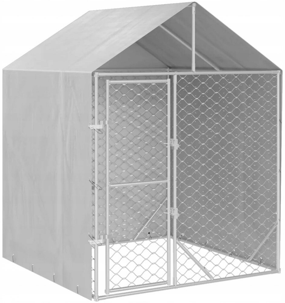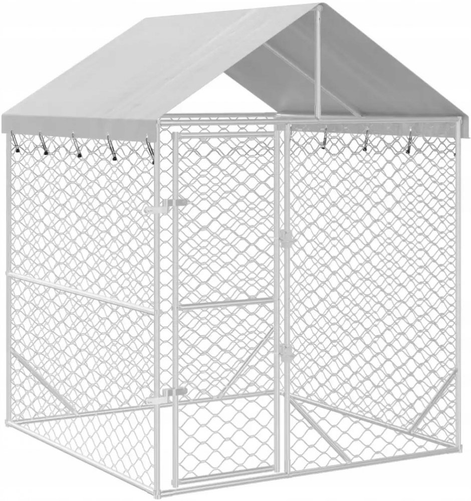 vidaXL Venkovní psí kotec se střechou stříbrný 200 x 200 x 250 cm