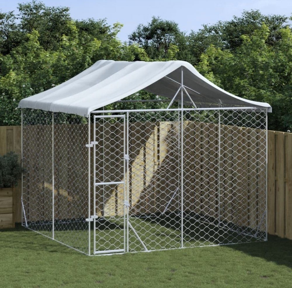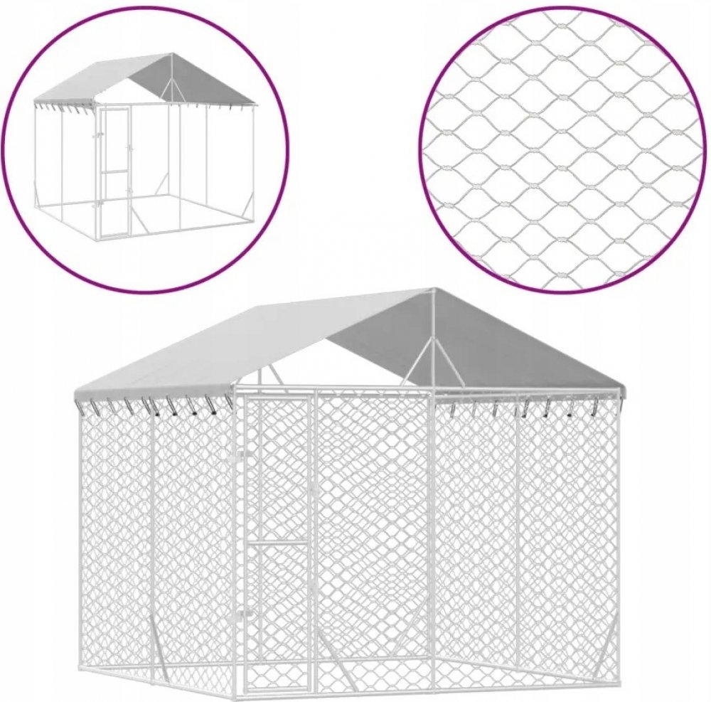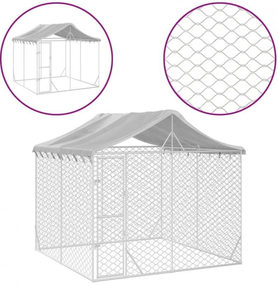 vidaXL Venkovní psí kotec se střechou stříbrný 300 x 300 x 250 cm