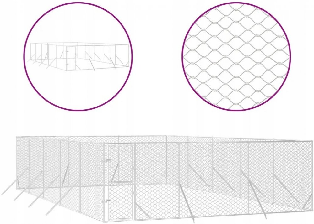 vidaXL Venkovní psí kotec stříbrný 600 x 1000 x 200 cm