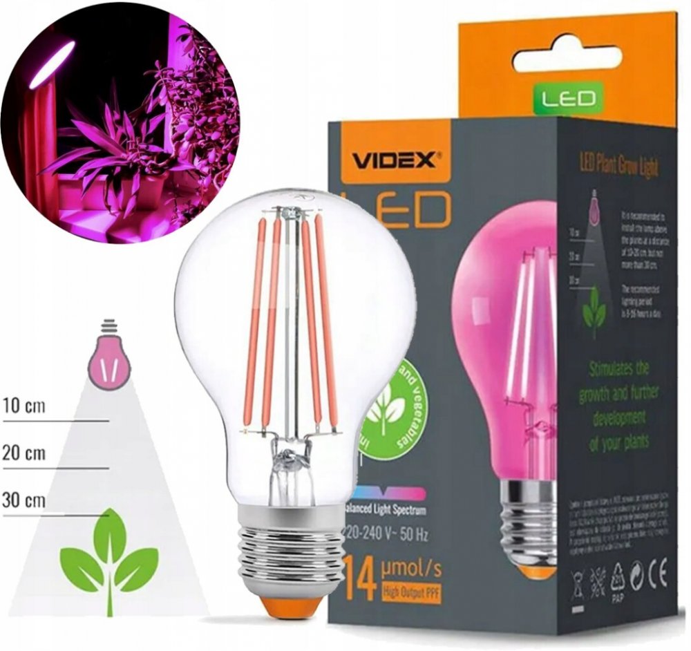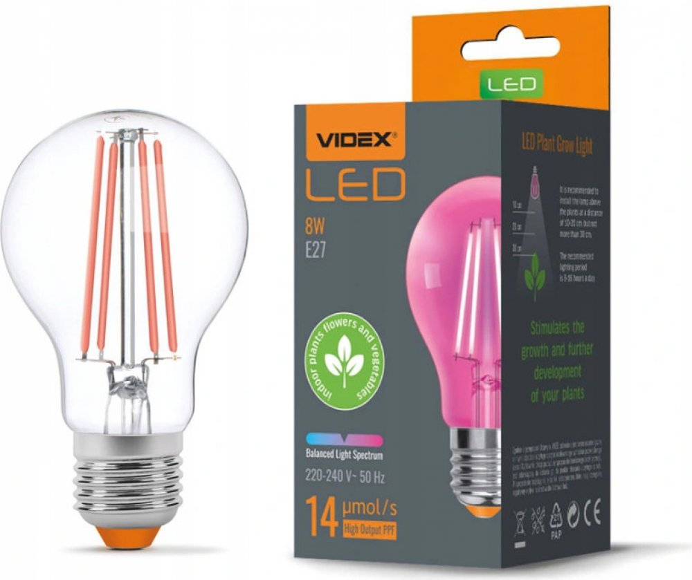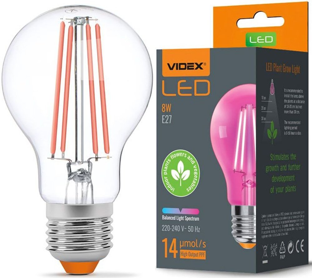VIDEX LED žárovka E27 8W pro pěstování rostlin
