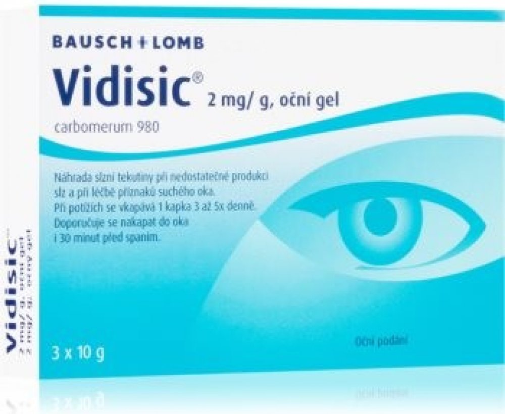 Vidisic 2mg/g oční gel se používá jako náhrada slzní tekutiny při nedostatečné produkci slz a při léčbě příznaků suchého oka (suchý zánět spojivek),