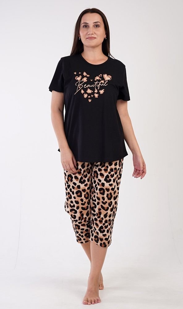 Dámské pyžamo kapri Butterfly.Dámské kapri pyžamo Butterfly. Dámské pyžamo se skládá z trička s krátkým rukávem a tříčtvrtečních kalhot. Jednobarevné tričko s kulatým výstřihem má na hrudi konturu motýla. Tříčtvrteční kalhoty s potiskem srdíček mají v pase gumu na stažení a jsou bez kapes. Použitý materiál je příjemný a poddajný na dotek. Obsah bavlny u kalhot je 70% a u trička 100%.Pokyny pro údržbu:-70% bavlna, 30% polyester- lze prát v pračce při teplotě do 30°- nesušit v sušičce- žehlit z rubu do 110°- nepoužívat bělící prostředky- nečistit chemickyMíry naměřené na výrobku:3120881478 Butterfly1XL2XL3XL4XLobvod hrudníku114116118122délka trika75757575pas78-8080-9282-9484-96