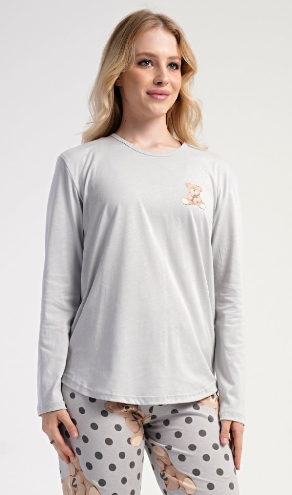 Vienetta Secret 100% bavlna šedá s dlouhými rukávy kulatý výstřih