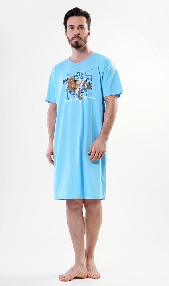 Vienetta MAN pánská noční košile s krátkým rukávem Boss světle tyrkysová