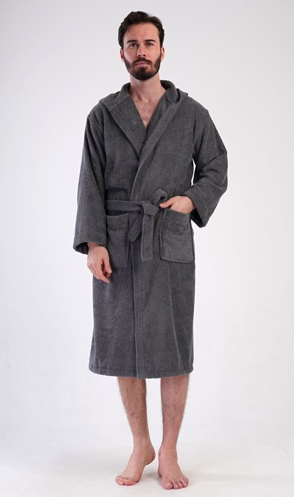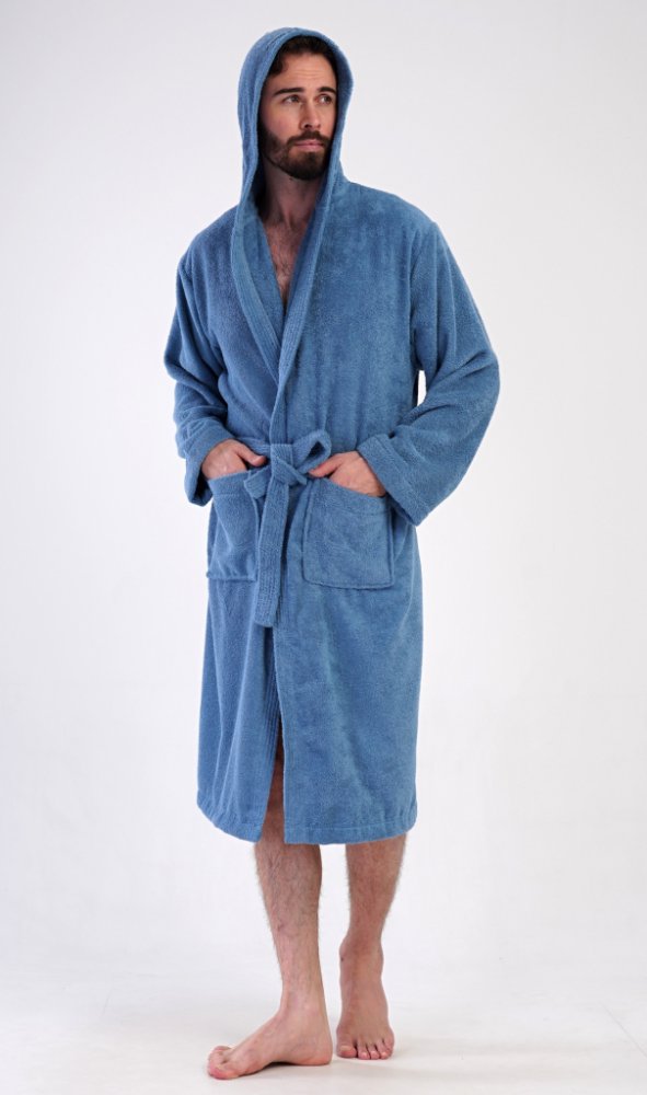 Pánský bavlněný froté župan s kapucí Albert. Pánský dlouhý župan s kapucí a páskem ke stažení je vhodný po koupeli i na povalování se doma na gauči. Froté župan má praktické kapsy, které oceníte při návštěvě wellness. Použitý bavlněný materiál je příjemný a poddajný na dotek.
