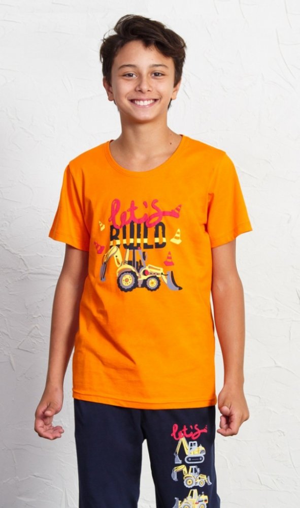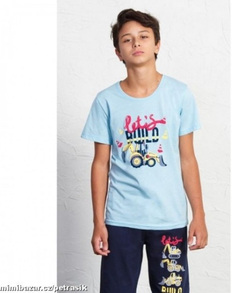 Materiál: 100% bavlna . Dětské bavlněné kapri pyžamo Traktorbagr.Dětské bavlněné kapri pyžamo Traktorbagr. Pyžamo tvoří tričko s krátkým rukávem a kapri kalhoty. Tričko zdobí potisk traktorbagru. Kapri kalhoty mají v pase gumu a jsou na jedné nohavici potištěny bagry. Bavlněný materiál je poddajný a jemný na dotek. Pyžamo je vhodné i na denní nošení.Materiály použité u tohoto výrobku jsou certifik...