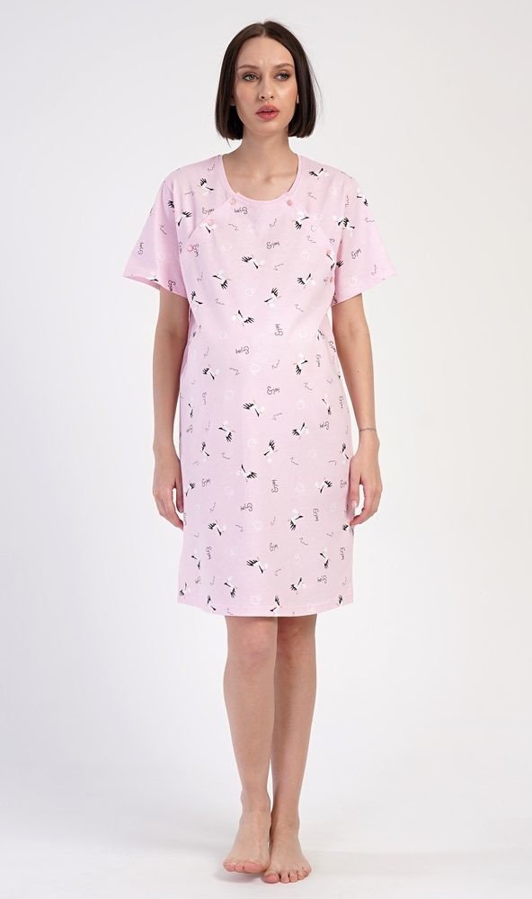 Vienetta Secret noční košile mateřská Čáp světle růžová