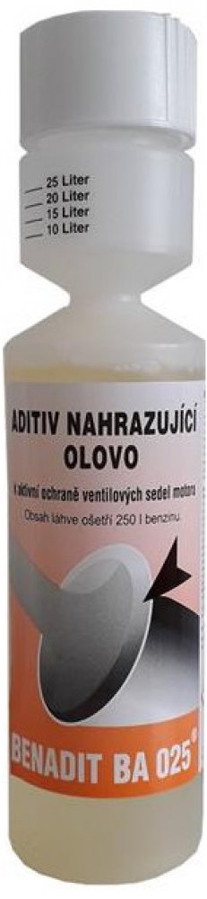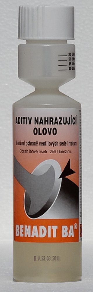žádného dílu zážehového motor Přísada do bezolovnatého benzinu, která umožňuje používání bezolovnatého benzinu i v automobilech, které byly konstruovány výlučně pro benzinové motory. Dokonale ochrání sedla ventilů a nemá negativní vliv na míru opotřebení žádného dílu zážehového motoru, ani negativně nepůsobní na žádné parametry v průběhu jeho provozu. Přísada nemá negativní vliv na životnost a správnou funkci katalyzátorů výfukových plynů. Doporučené dávkování: Benedit BA 0.25l - 1:1000 Do nádrže nejdříve nalijete aditiv v doporučeném poměru a poté natankujete. Dojde tak k rovnoměrnému promíchání přípravku