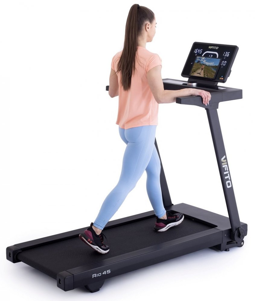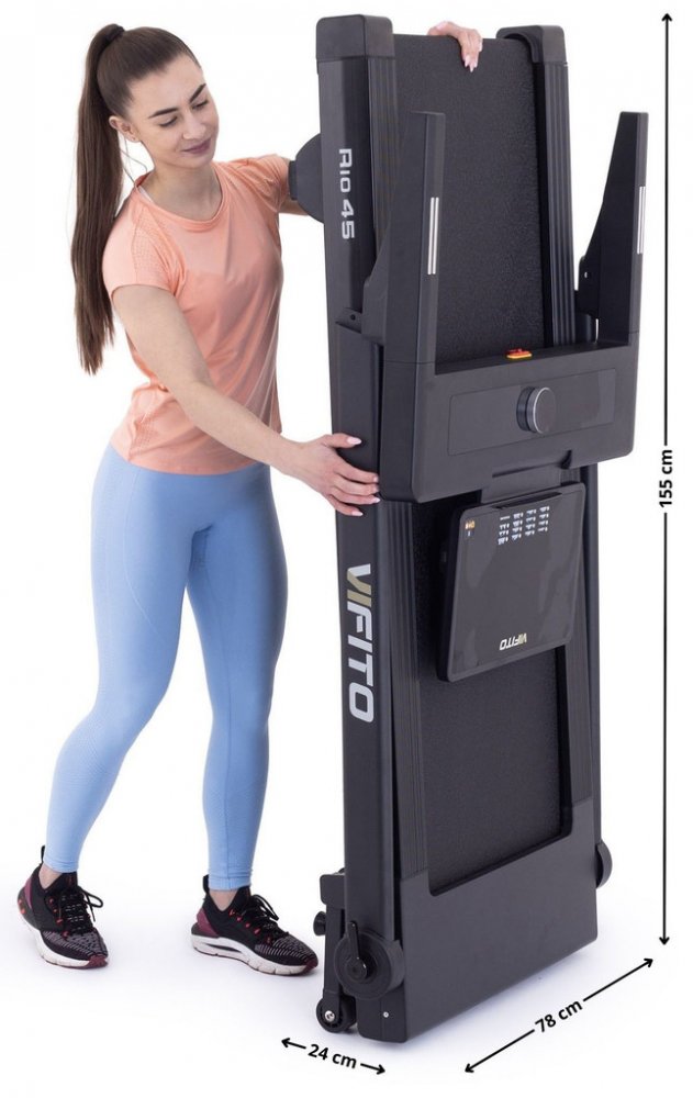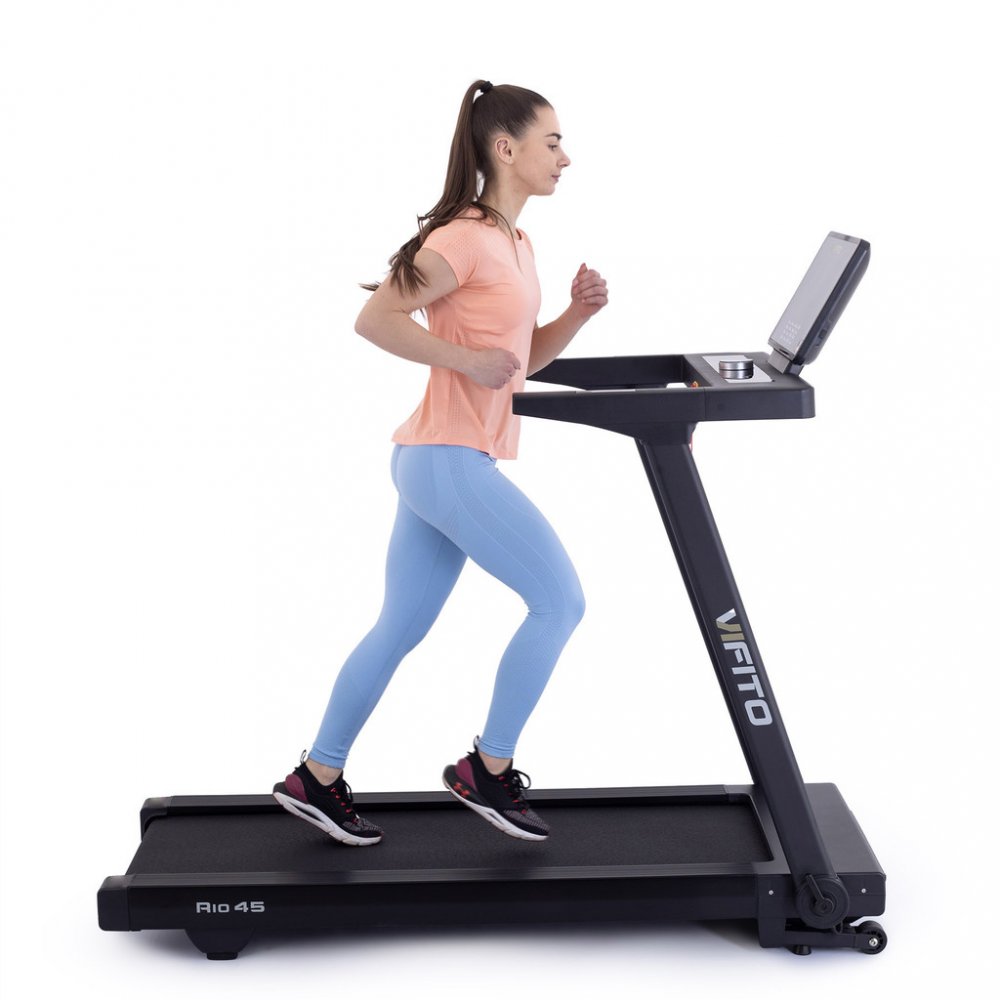 Rádi byste běhali pravidelně, ale počasí vám nepřeje? Neplýtvejte svým drahocenným časem a běhejte v pohodlí domova na běžeckém pásu Vifito. Tento běžecký pás se řadí mezi motorové typy. Můžete na něm běžet maximální rychlostí až 18 km/h. Běh vám zpestří elektrický náklon, který může být až 15 °. Tento běžecký pás Vifito disponuje maximální nosností 140 kg. Při běhu se budete moci spolehnout na motor o výkonu až 4,10 HP. Co se týče šířky běžecké plochy, ta se dostala na 48 cm. Díky displeji budete informování o všem podstatném. Je pro vás připraveno 20 programů. Při výběru je nutné myslet na to, že jsou jeho rozměry 78 × 130 × 155 cm. Rozhodující parametry běžeckého pásu Vifito Rio 45 Běhejte i za nepříznivého počasí v pohodlí domova díky Vifito Je označován také jako běžecký pás s motorem Budete na něm moci běžet rychlostí až 18 km/h Elektrický náklon pro zvýšení komplexnosti Běžecký pás Vifito lze naklonit až o 15 ° Nosnost: 140 kg Motor o výkonu až: 4,10 HP U tohoto modelu je běžecká plocha o šířce 48...