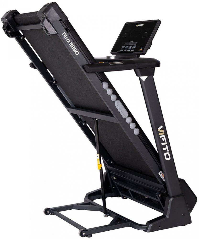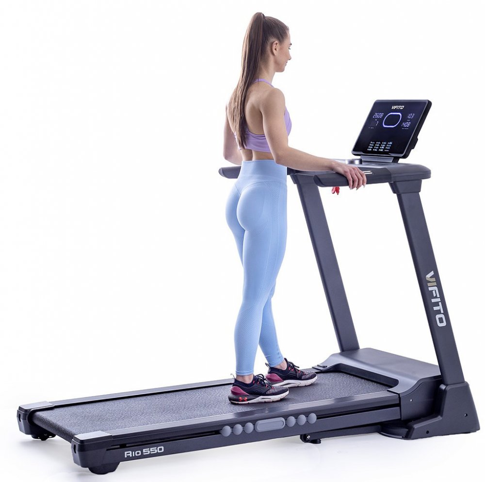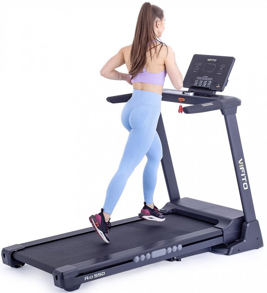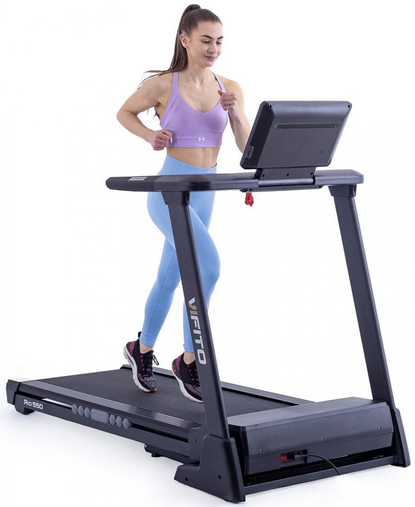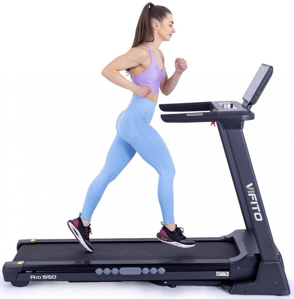 Vifito Rio 550 je kvalitní a velmi skladný běžecký pás do domácnosti. Pečlivě vyvinutá konstrukce a kvalitní odpružení běžecké plochy minimalizuje zatížení kloubů a vazů. Pás je navíc opatřen systémem odhlučnění, který omezuje vibrace a přenos došlapů do podlahy. To vše na běžecké ploše o rozměrech 140 × 52 cm. Kvalitní motor s maximálním výkonem 4,5 HP a vysokým záběrovým momentem vám umožní trén...
