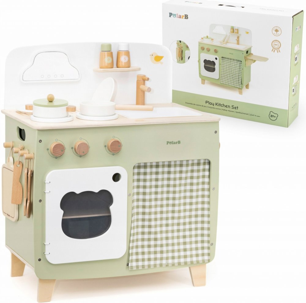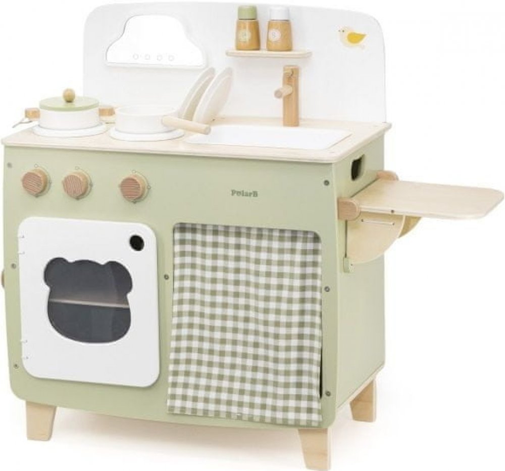 Dřevěná kuchyňka se sporákem, troubou a dřezem.Série s ledním medvídkem a jeho kamarády PolarB.