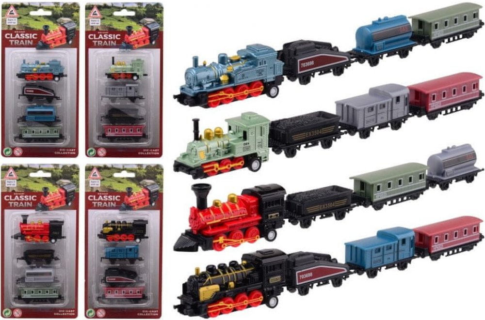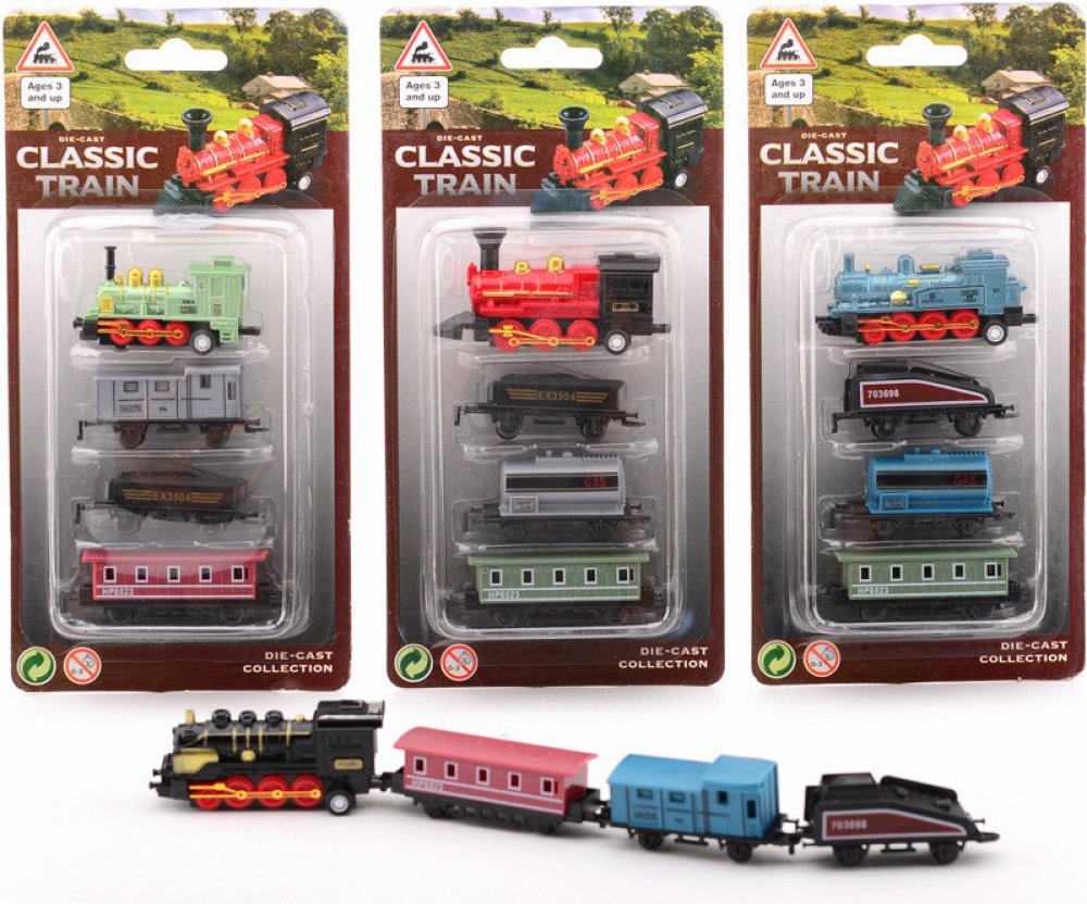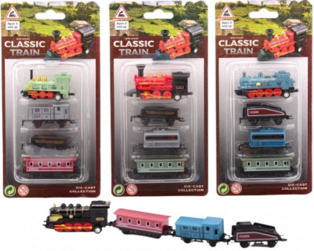 Mašinka kovová + tři vagóny. 3 různé druhy.