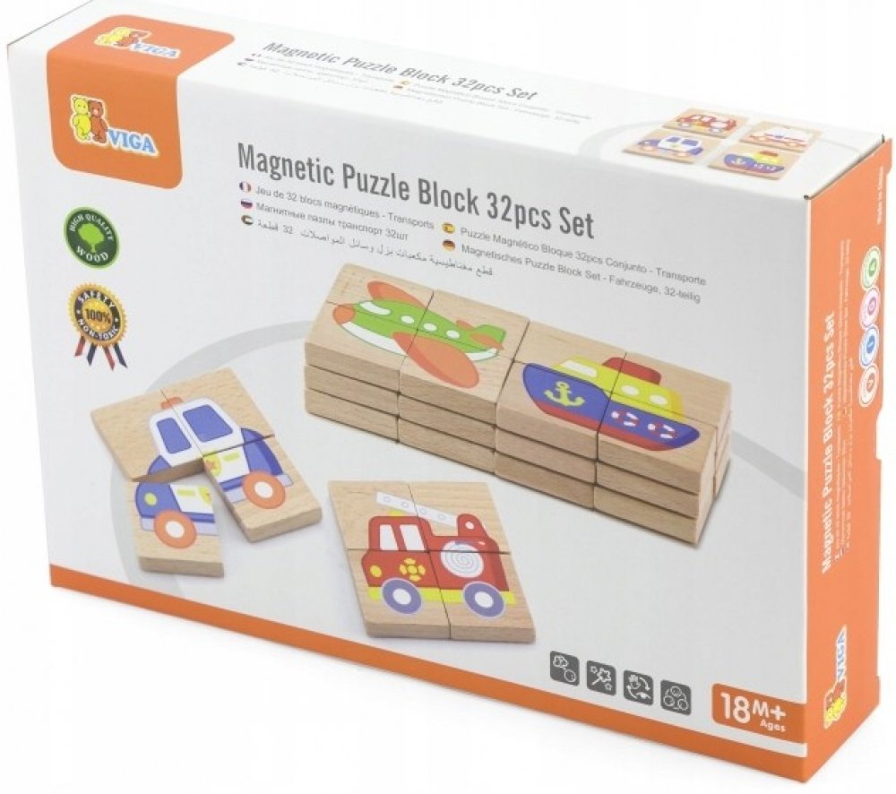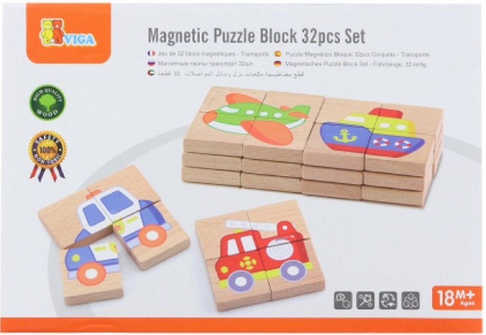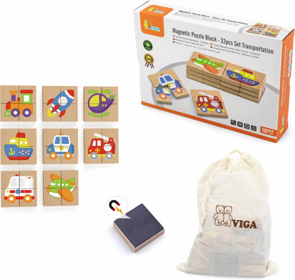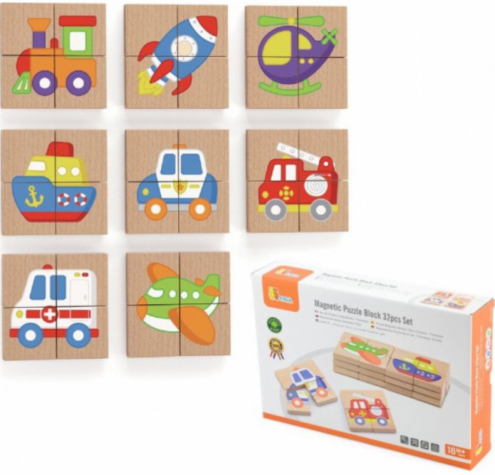 Viga Dřevěné magnetické puzzle dopravní prostředky