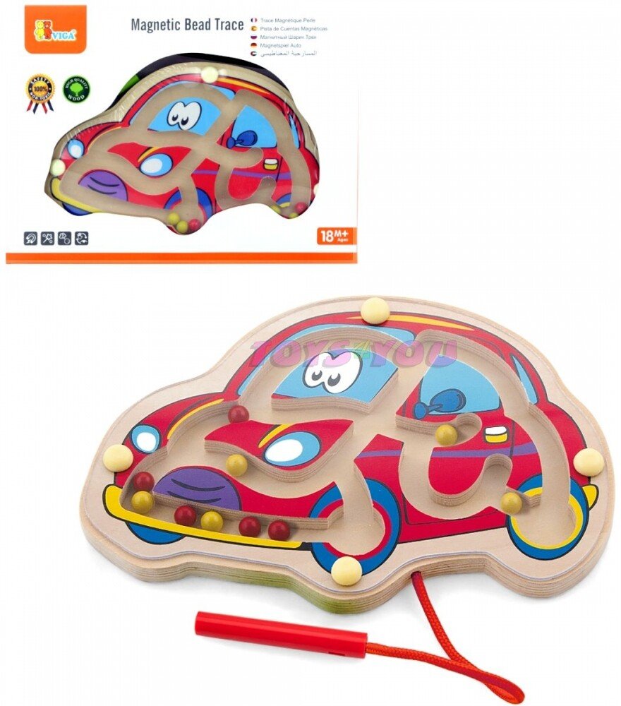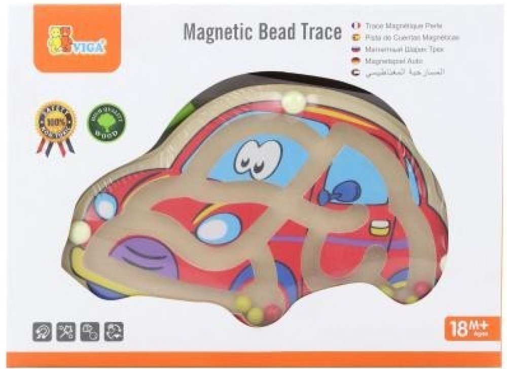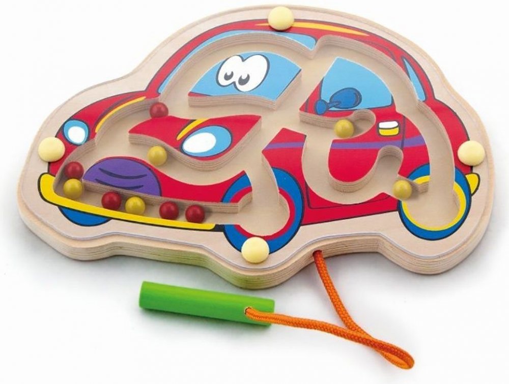 Stimuluje dětské povědomí o prostorových vztazích, rozvíjí koordinaci a manuální dovednosti. Sada obsahuje 1 magnetickou tyčinku, která slouží k řízení kuliček v bludišti.Celá hračka je vyrobena z lakovaného dřeva a natřena netoxickými barvami v zářivých barvách, které potěší každého uživatele a poskytnou spoustu zábavy. Naší prioritou je bezpečnost a kvalita našeho zboží, proto dbáme na to, aby barvy, které používáme k natírání našich hraček, byly netoxické a splňovaly bezpečnostní normy (EN71 a ASTM).Tato hračka je vhodná pro batolata starší 18 měsíců.Rozměry balení: 190X130X17 mmBarva: Multicolor