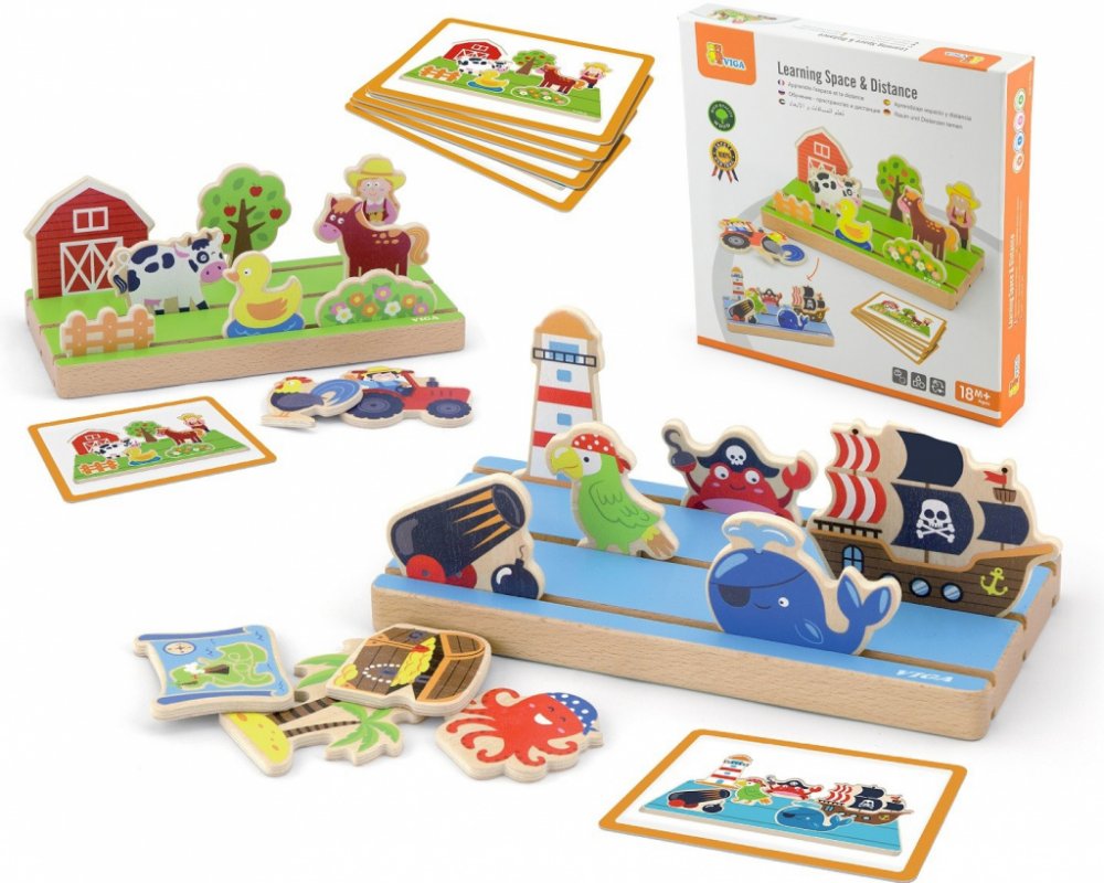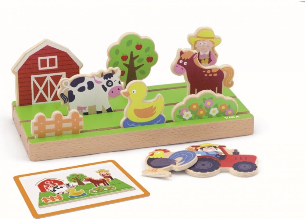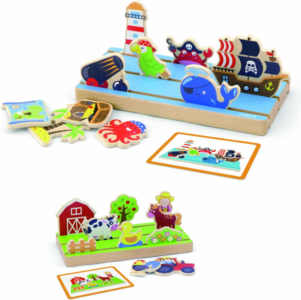 Dřevěná naučná hra obsahuje 20 obrázkových bloků, podložku s drážkami po obou stranách a 5 karet s pokyny. Děti mohou tyto obrázkové bloky vkládat do drážek podle pokynů a nebo si vytvořit libovolné rozvržení.