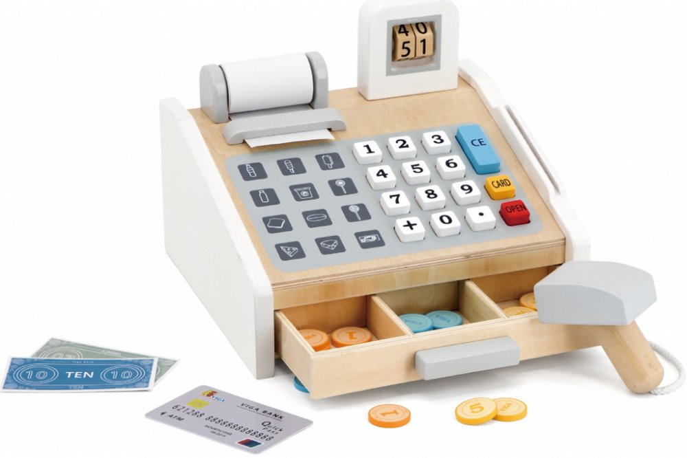 Dětská dřevěná pokladna od firmy Viga je ideálním dárkem, který potěší každé dítě. Hra na obchod - kdo by se s ní nehral ... Když počasí nepřeje a musíme se bavit doma ...