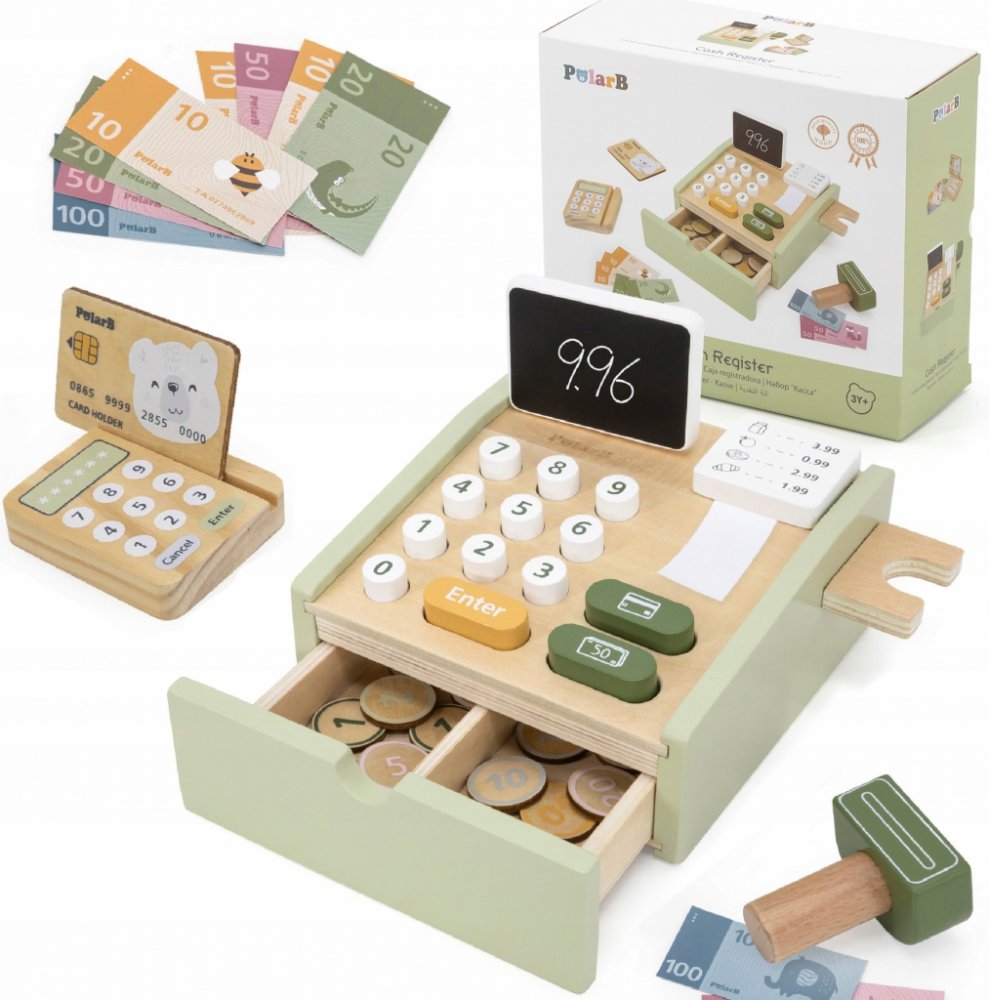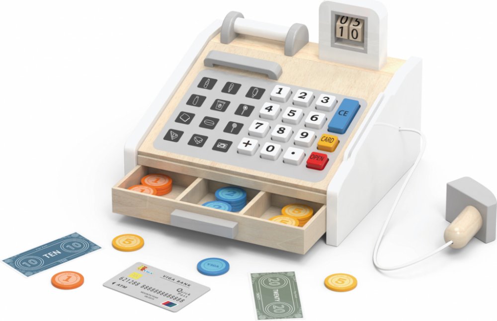 Rozvíjí představivost a fantazii, podporuje učení se počítání, naučí, jak manipulovat s penězi, obohatí sociální dovednosti. Kromě toho firma VIGA použila "šedo-bílé" barvy, aby vzhled oživila. Pomůže rozvíjet u dítěte logické myšlení a motorické schopnosti. Kromě toho pomůže pochopit hodnotu peněz a základy matematiky.