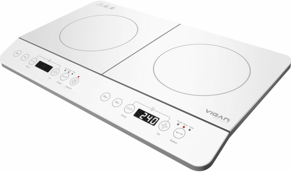 Indukční vařič dvouzónový se speciálním sklokeramickým povrchem zajistí rychlý a rovnoměrný ohřev. Disponuje dvěma velkými LED displeji. Má dvě nezávislé varné zóny, levá od 500 do 2000 W, pravá od 500 do 1500 W. Má 10 přednastavených stupňů ohřevu od 60 do 240 °C a automatickou detekci vhodného nádobí. Přístroj má též časovač do 180 minut a pojistku proti přehřátí. Vhodný je pro nádobí s průměrem dna od 12 do 23 cm (průměr varných zón je 20 cm). Napájení: 220 - 240 V ~ 50 Hz