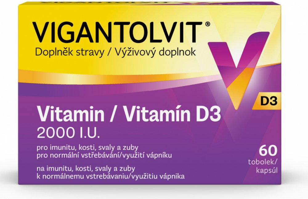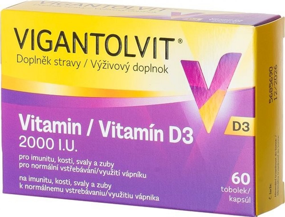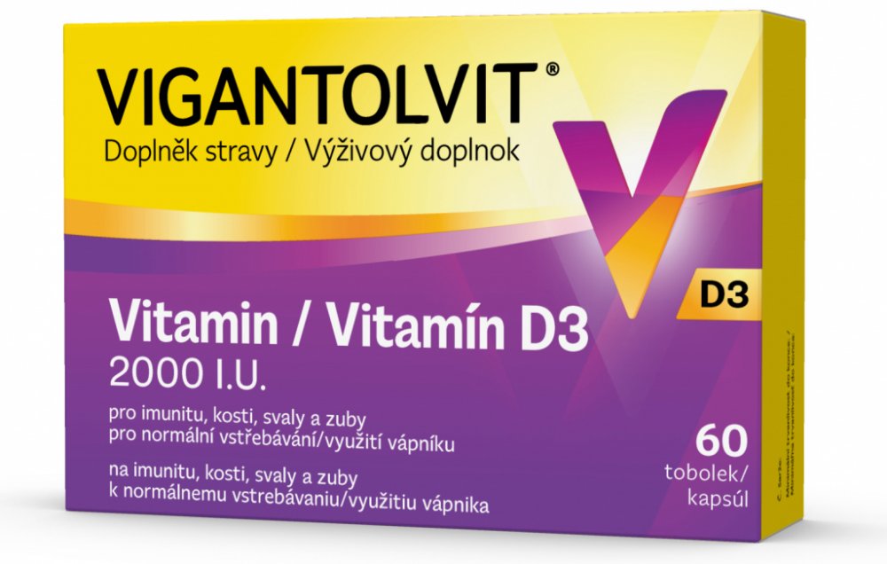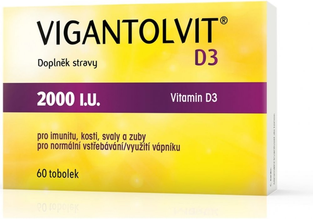 Vigantolvit D3 2000 I.U. je doplněk stravy s obsahem vitaminu D3. Přípravek je vhodné užívat během měsíců s nízkou intenzitou slunečního svitu (září - duben). Dále je určený pro osoby středního věku a starší, ženy v menopauze a po ní, osoby s vyšším BMI a osoby s omezenou expozicí slunečnímu svitu.