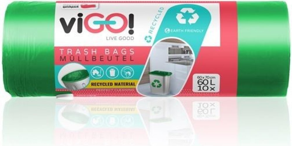 Zelené pytle ViGO jsou ideální pro sběr odpadu v domácnostech, kancelářích nebo na veřejných prostranstvíchVyrobené z kvalitního LDPE materiálu (polyethylen nízké hustoty) s tloušťkou 30 mikronů, jsou dostatečně pevné a odolné pro každodenní použitíObjem 60 litrů a rozměry 60 x 80 cm poskytují optimální velikost pro běžný odpadMateriál: LDPE30 mikronůV balení 10 pytlů