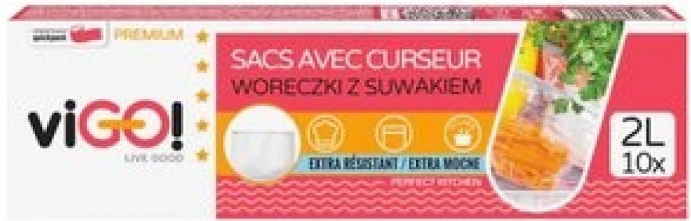 viGO! Sáčky uzavíratelné s jezdcem - 2l - 10ksIdeální na potraviny pro uskladnění v lednici či mrazničce nebo pro uschování věcí. Sáčky jsou velmi pevné a je možné je používat opakovaně díky jezdci se