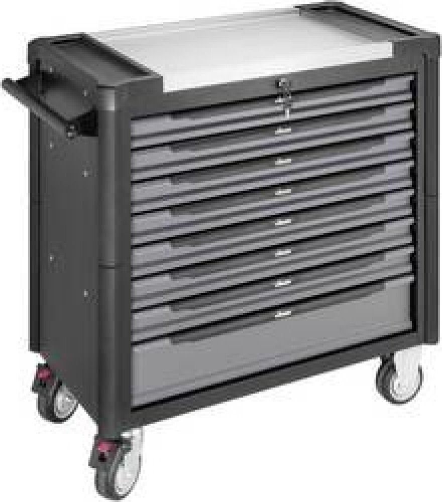 Součástí vozíku je 8 uzamykatelných zásuvek pro uložení výplní dílenského vozíku s ručním nářadím. Zásuvky jsou osazeny kuličkovými ložisky v pojezdech, čímž se zvyšuje jejich nosnost bez vlivu na výbornou vlastnost výjíždění/zajíždění.