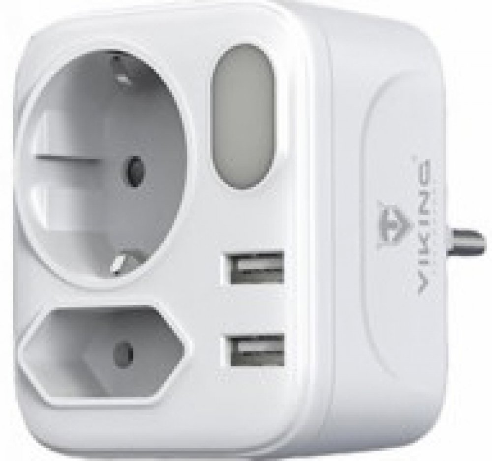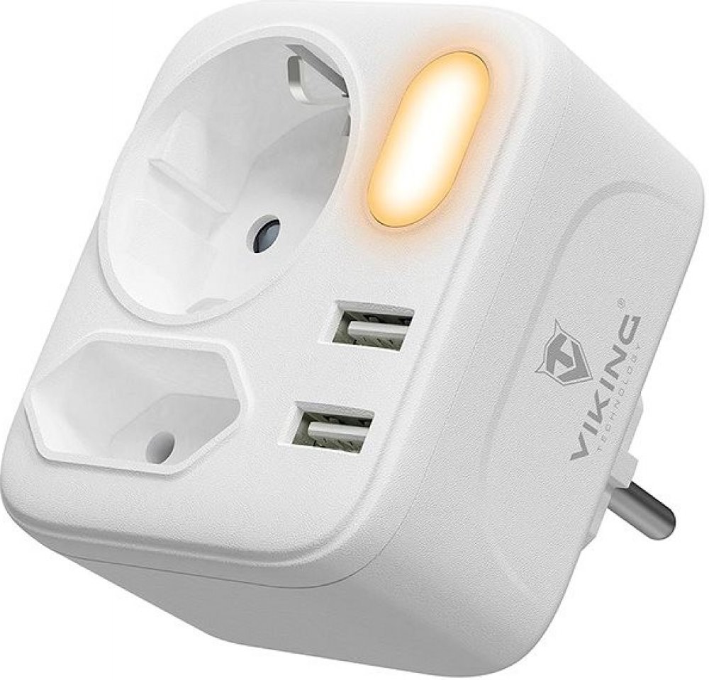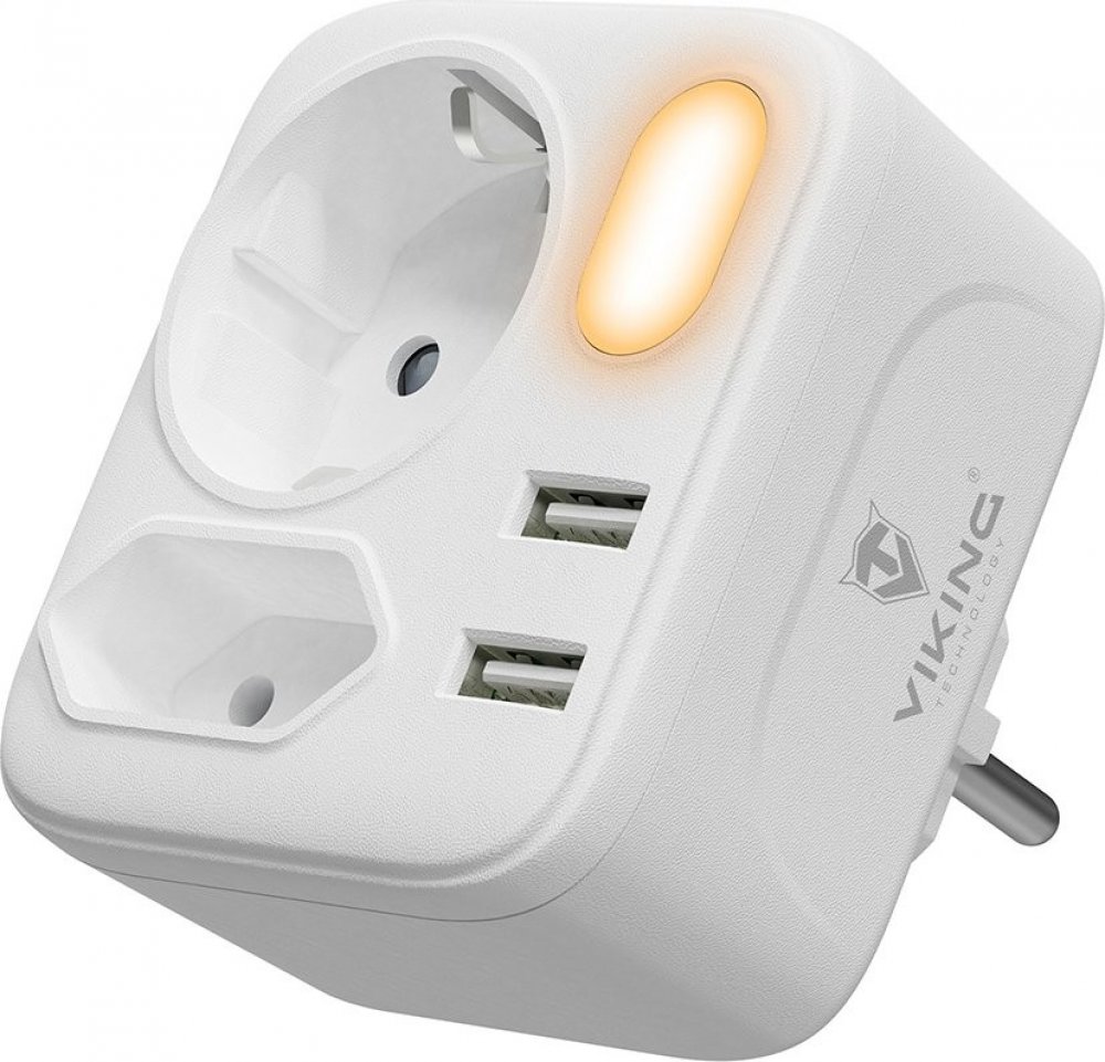 Síťový adaptér • rozbočovač • zásuvka • 2 x AC (230V) výstup • 2 x USB-A (5V/2.4A) • kompaktní design a rozměry • možnost nabíjení až 4 zařízení současně • LED svítilna