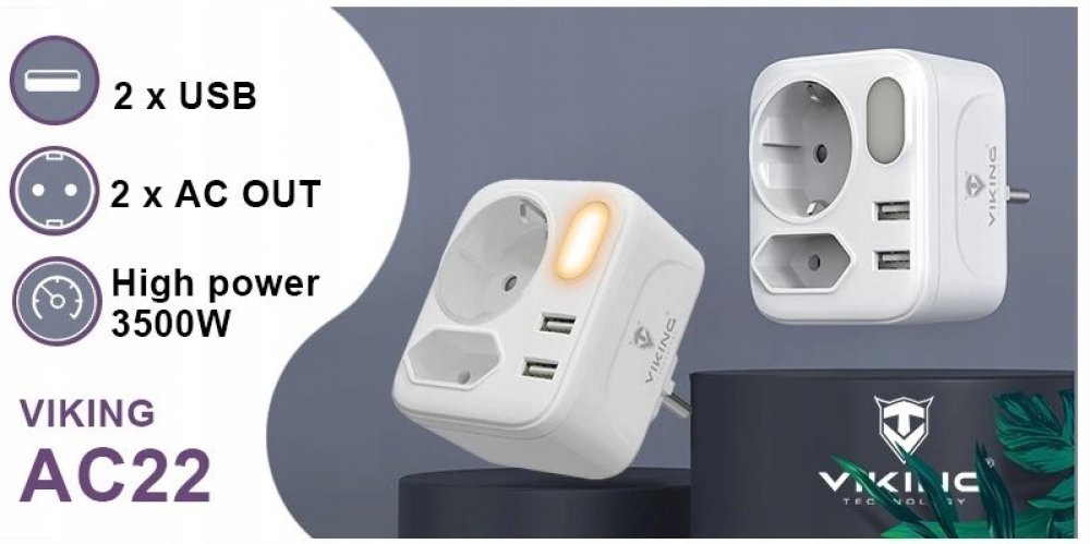 Viking AC22 nejenže je silným výkonným zařízením, ale také elegantním doplňkem vaší domácnosti nebo pracovního prostoru. Jeho moderní design se snadno vmísí do jakéhokoli prostředí. Navíc adaptér disponuje praktickou LED svítilnou, která může sloužit jako noční osvětlení výstupů.