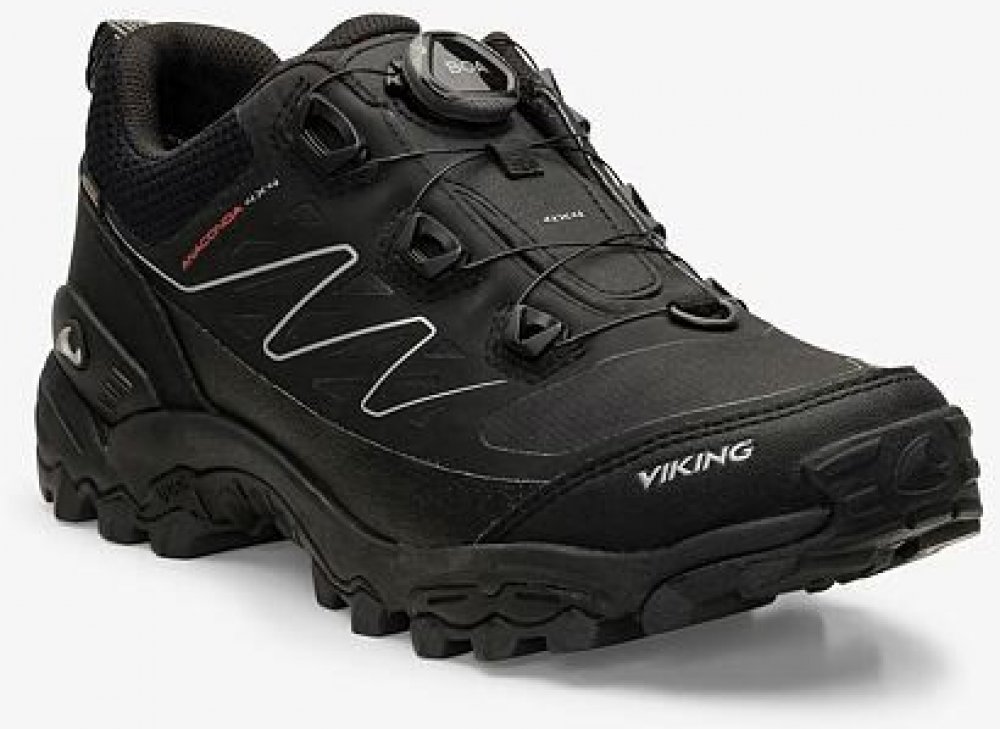 Celoroční outdoorová obuv Anaconda 4x4 Low GTX BOA přináší vše, co potřebujete do každého terénu za každého počasí. Treková podešev UGC® z přírodního kaučuku je postavená tak, aby snadno zvládla procházky i náročné výšlapy a to díky výborné přilnavosti k terénu. Samoformovací stélka a EVA mezipodešev absorbují nárazy a zabraňují bolavým nohám při dlouhé chůzi. Odolná membrána GORE-TEX zajišťuje vodotěsnou ochranu a kontrolu vlhkosti v obuvi. Perfektní dotažením k noze zajistí Boa systém, který funguje na principu navíjení lanka na kolečko. Zamáčknutím a otáčením navíjecího kolečka se lanko utahuje a díky tomu je noha rovnoměrně utažena. Výsledkem je maximální pohodlí. Utažené boty se sami nepovolují. Vytažením kolečka směrem od nohy se lanko uvolní. pro správné zvolení velikosti jsou míry uvedeny ve velikostní tabulce kvalitní obuv norského výrobce Viking GORE-TEX membrána zajišťuje botám odolnost proti pronikání vnější vlhkosti a zároveň umožňuje maximální prodyšnost, čímž je zaručeno optimální klima v obuvi vrchní materiál: syntetika, textil vnitřní materiál: textil, vyjímatelná stélka podešev: směs přírodního kaučuku vzor: Anaconda 4x4 Low GTX BOA black/orange 3 55200 231