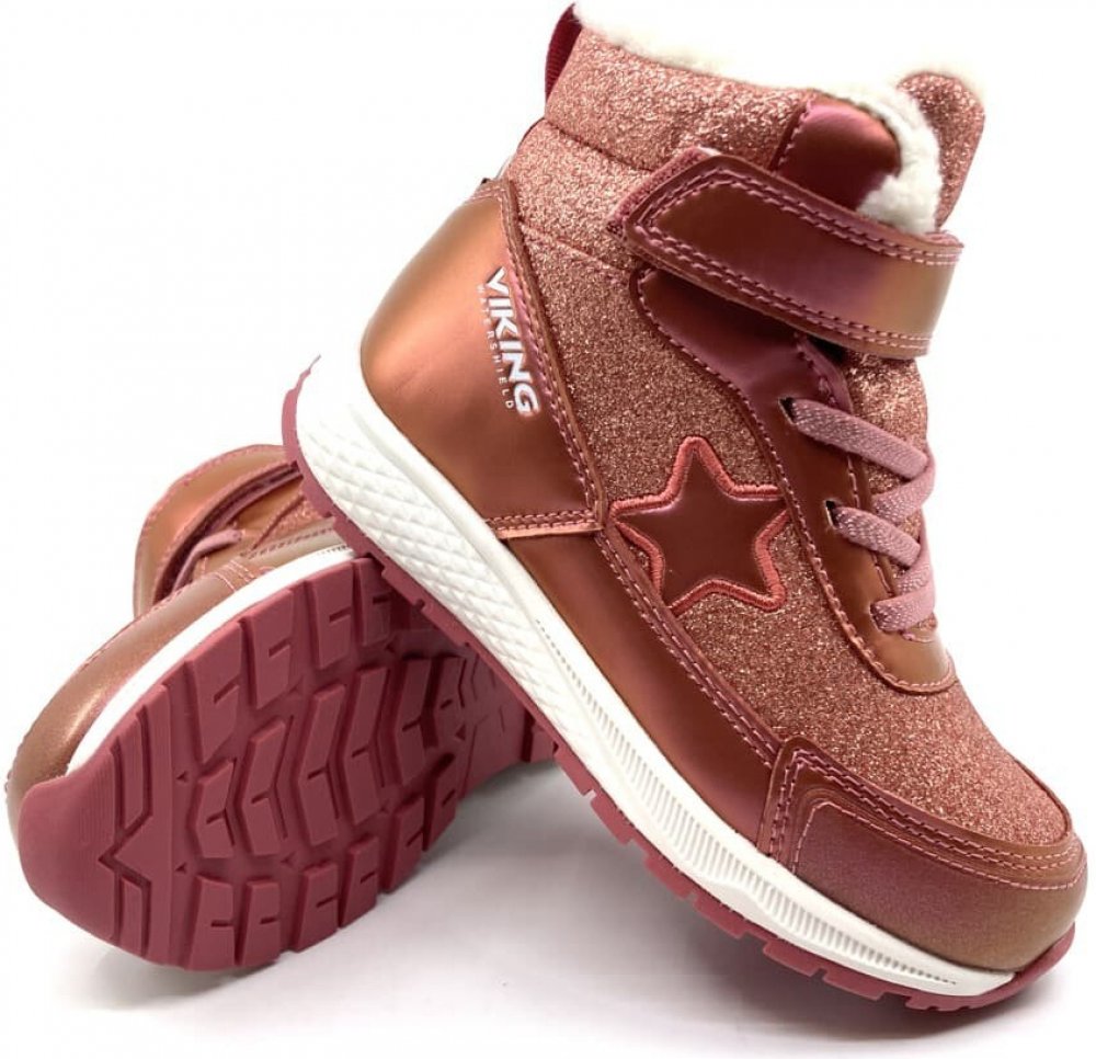 Viking Equip Star Warm WP 1V SL jsou dívčí zimní boty v růžové barvě se třpytkami, které kombinují styl a pohodlí. Nepromokavá membrána udrží nožky v suchu, zatímco teplounký kožíšek zajistí teplo i v mrazech. Boty od norského výrobce Viking jsou poměrně lehké, mají protiskluzovou odolnou podrážku, která dobře absorbuje vibrace.