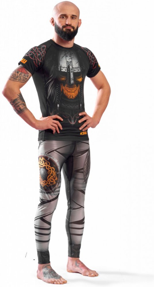 Legíny KSW Mad VikingPánské legíny KSW Mad Viking. Odvážná, originální a agresivní grafika s tématikou Vikingů. Legíny jsou navrženy s ohledem pro intenzivní trénink. Legíny KSW a jejich kompresní technologie podporuje regeneraci svalů.Rashguard z oficiální oblečení z kolekce KSW. Konfrontacja Sztuk Walki známější pod svými iniciálami KSW, je široce považována za jednu z nejlepších Evropských organizací se sídlem v Polsku. Polská jednička MMA (smíšených bojových umění) KSW vstupuje na český trh a my máme možnost nabídnout vám oficiální oblečení této organizace.Model je vysoký 178 cm a nosí velikost M. KSW