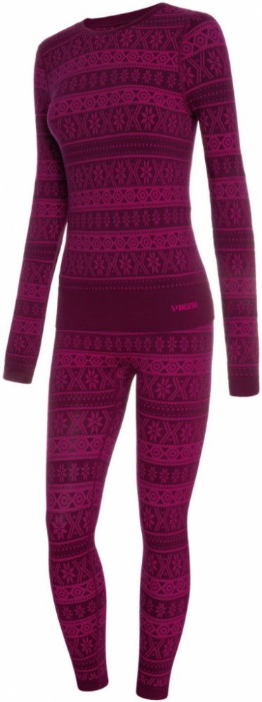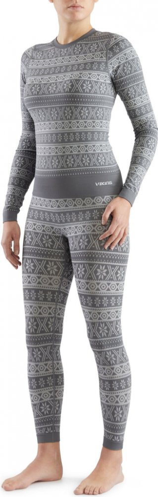 Viking Hera je sada termoaktivního prádla pro ženy s výrazným zimním zdobením. Velmi pěkný a elegantní vzor dokonale zapadá do zimní atmosféry. Toto spodní prádlo je vysoce prodyšné a má vynikající tepelné vlastnosti. Je hřejivé, velmi jemné a měkké na dotek, takže nedráždí pokožku a příjemně se nosí. Díky své pružnosti se dokonale přizpůsobí tělu. Vysoko umístěný pás v kalhotách navíc zlepší izolační vlastnosti. Viking Hera je hitem pro dlouhé zimní večery.bezešvédokonale padnoucítermoregulačnírychle…