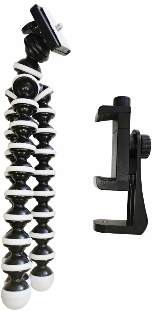 1) Flexibilní nohy stativu, které můžete jakkoliv ohýbat a natáčet - díky této flexibilitě můžete tento stativ připevnit, uchytit, nebo obtočit kolem jakéhokoliv předmětu.