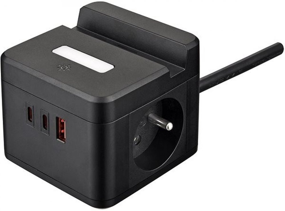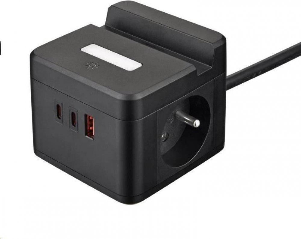 Síťový adaptér VIKING YC23H kombinuje dva AC výstupy, tři USB porty, což umožňuje nabíjení až pěti zařízení současně. Je vybaven držákem na mobilní telefon a dotykovým světlem se třemi úrovněmi svícení, zajišťujícím pohodlné a efektivní používání doma i v kanceláři.