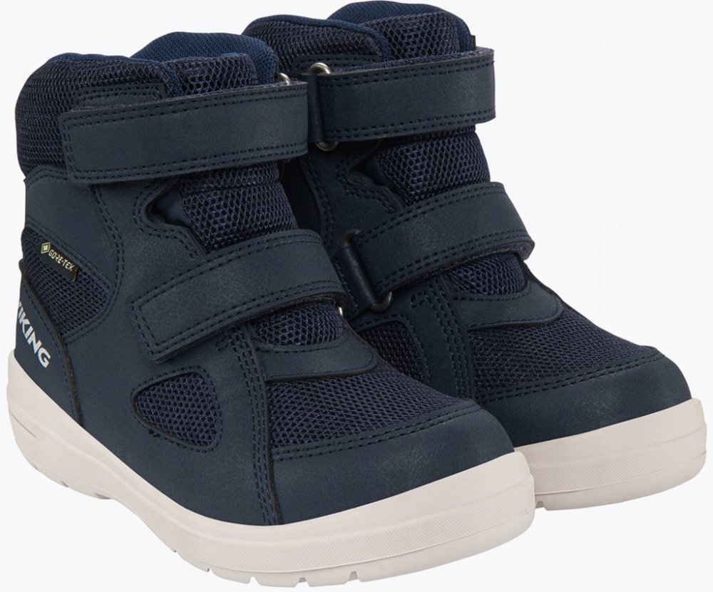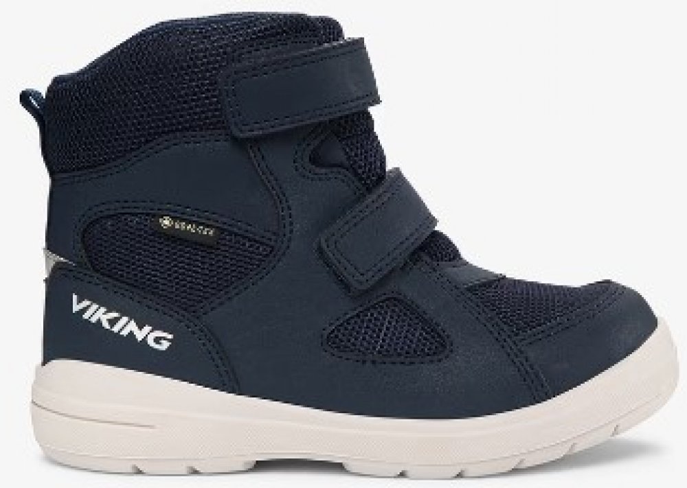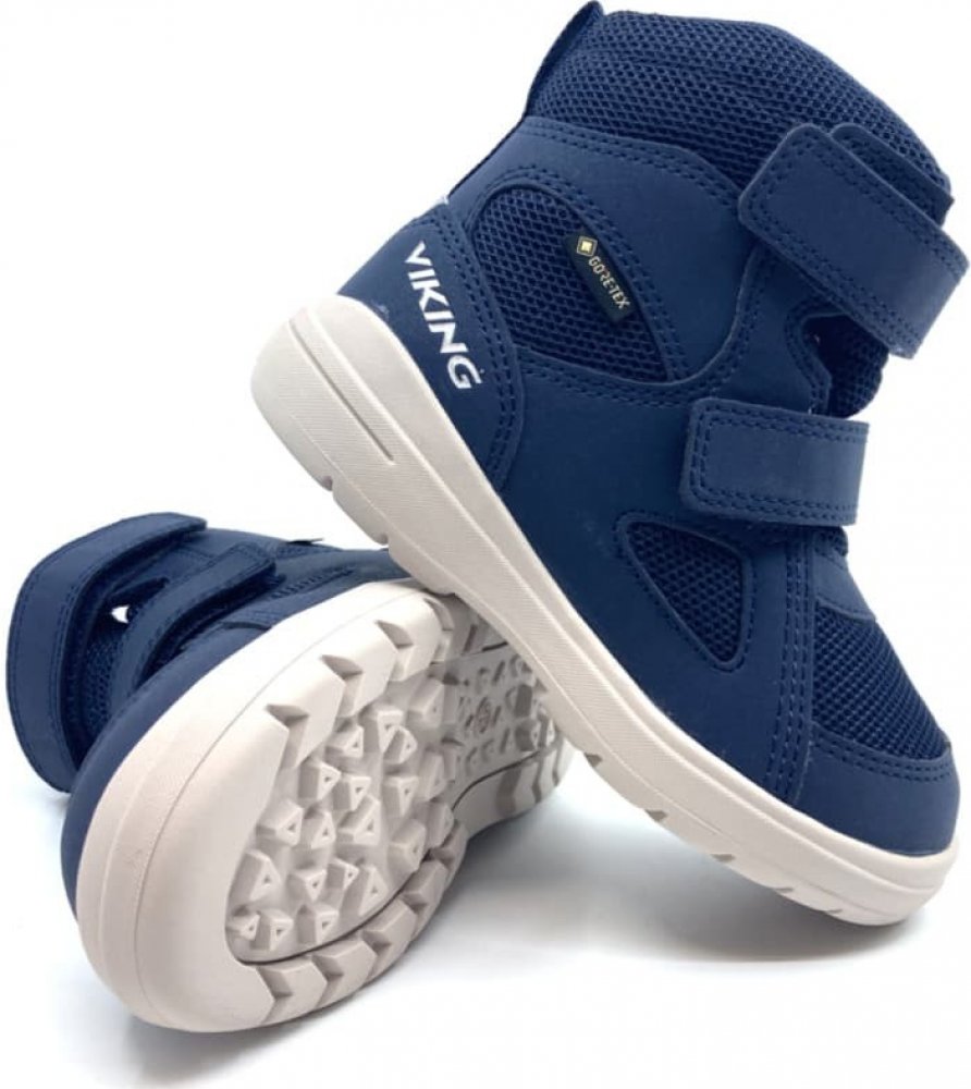 Teplé a odolné dětské zimní boty Viking Fun Warm GTX v tmavě modré barvě Navy s GoreTex membránou. Kombinace textilních a syntetických materiálů dělá boty dobře prodyšné a zároveň odolné díky ochranné vrstvě na špičce a patě. GoreTex membrána zajistí nepromokavost a zároveň prodyšnost, takže udrží dětské nožky v suchu a pohodlí.Boty jsou vyššího střihu - končí cca 5cm nad kotníkem.