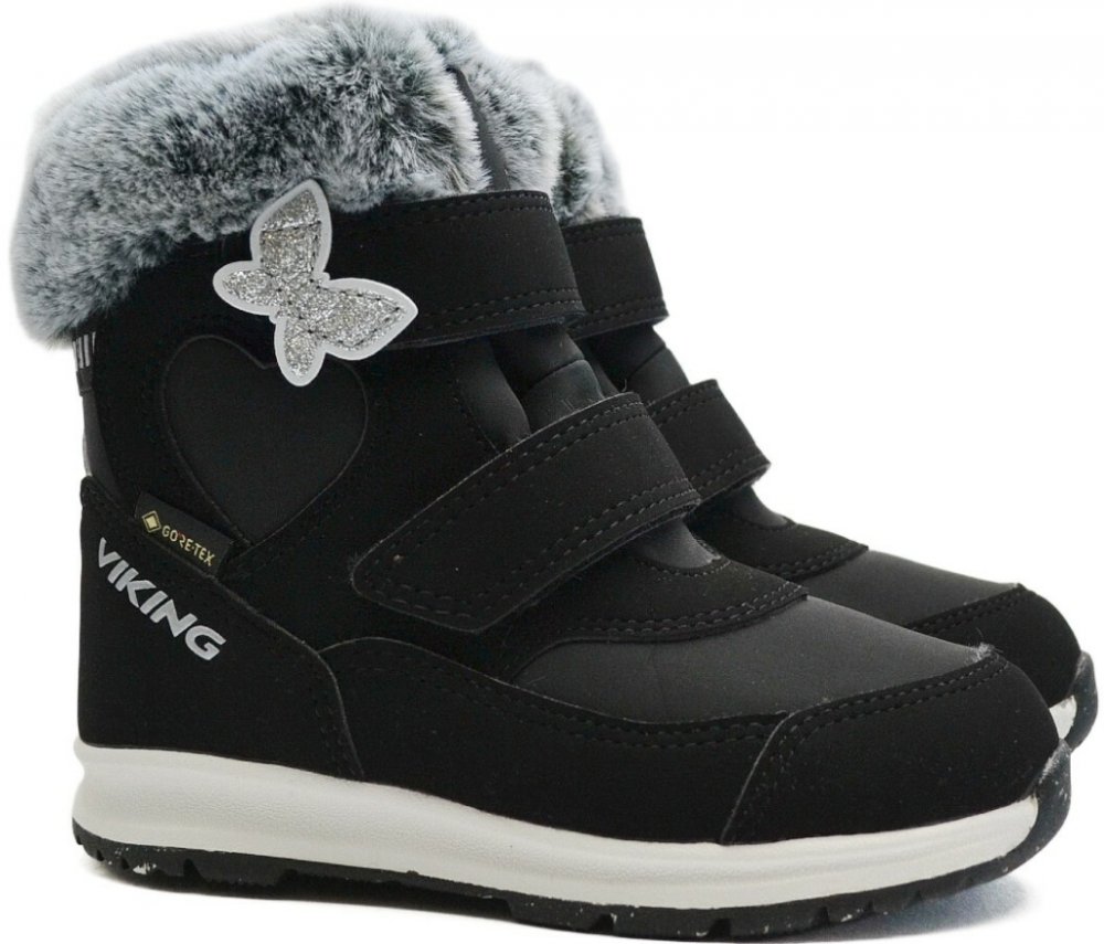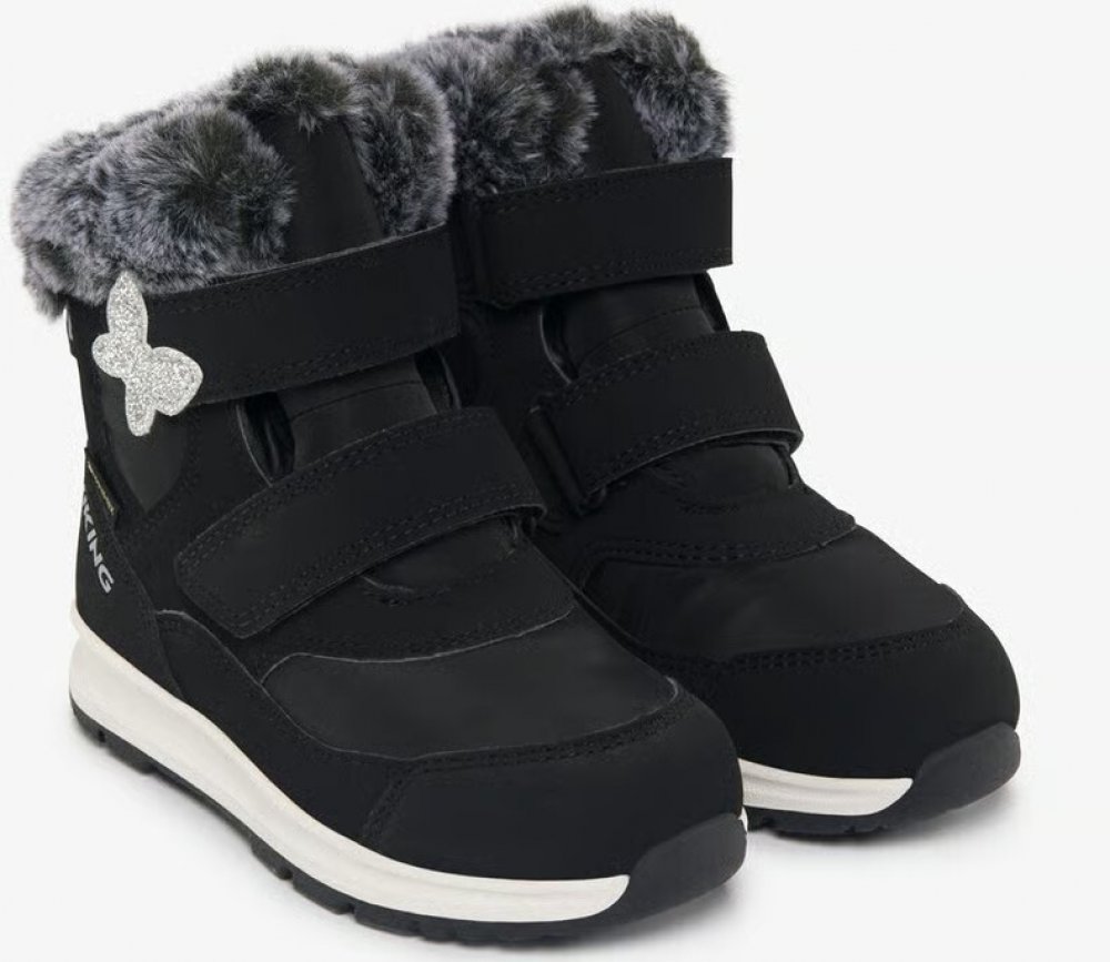 Zimní obuv od norské firmy VIKING na suchý zip s membránou Gore-tex.Gore-Tex membrána - je tenká vrstva, tvořena z 1,4 miliardami trychtýřových pórů. Tyto póry zajišťuji maximální možnost prodyšnosti a zároveň brání promoknutí. Tím se výrobky s použitím této technologie stávají takřka nepromokavé a zároveň maximálně prodyšné. Svršek- textil, syntetika. Vnitřní prostor boty je zateplený. Vyjímatelná zateplená stélka. Protiskluzová podrážka. Pevný opatek.Belle Butterflay Warm GTX má vše potřebné k tomu, aby vašemu dítěti přinesly pohodlí, jakmile nastane chladné a vlhké počasí. Vodotěsná membrána GORE-TEX bez PFC udrží nohy suché, zatímco hřejivá izolace chrání před chladem. Odolný střih střední výšky pak poskytuje stabilitu a dvojité suché zipy umožňují dětem rychle si upravit obuv podle potřeby. Celá gumová podrážka zajišťuje pevný úchop na jakémkoli povrchu.Délka x šířka stélky: vel.24- 156 x 62mm, vel.25- 162 x 63mm, vel.26- 170 x 65mm, vel.27- 178 x 67mm, vel.28- 184 x 69mm, vel.29- 190 x 70mm, vel.30- 198