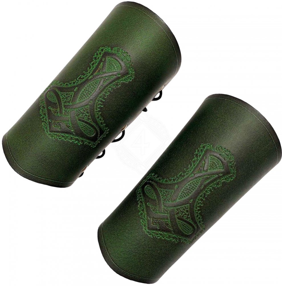 Vikingské kožené nátepníky Mjolnir | Thorovo kladivo | Pár