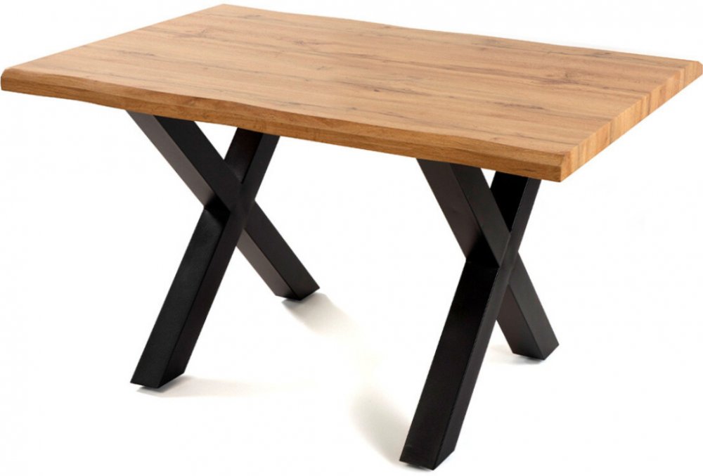 Jídelní stůl VJS100D-140 spojuje přírodní dekor dubu s kovovou podnoží do X v černém matu. Deska z kvalitní MDF působí masivně a snadno se čistí. Rozměr 140×90×75,5 cm pohodlně hostí rodinu i přátele. Skvěle zapadne do moderních i industriálních interiérů – ať už kompletně ladíte jídelní stoly nebo doplňujete stávající sestavu.