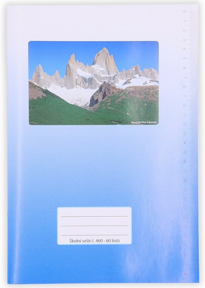 Optimální školní sešit s obrázky přírody a štítkem na jméno a třídu na přední straně.