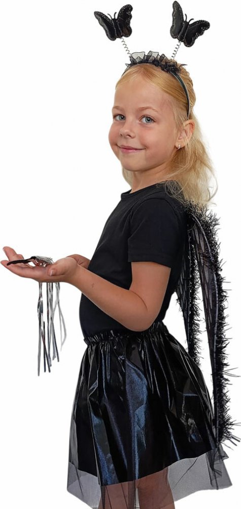 Karnevalový set obsahuje sukni, křídla, čelenku a hůlku. Délka sukně je 30 cm. Výška křídel 40 cm.