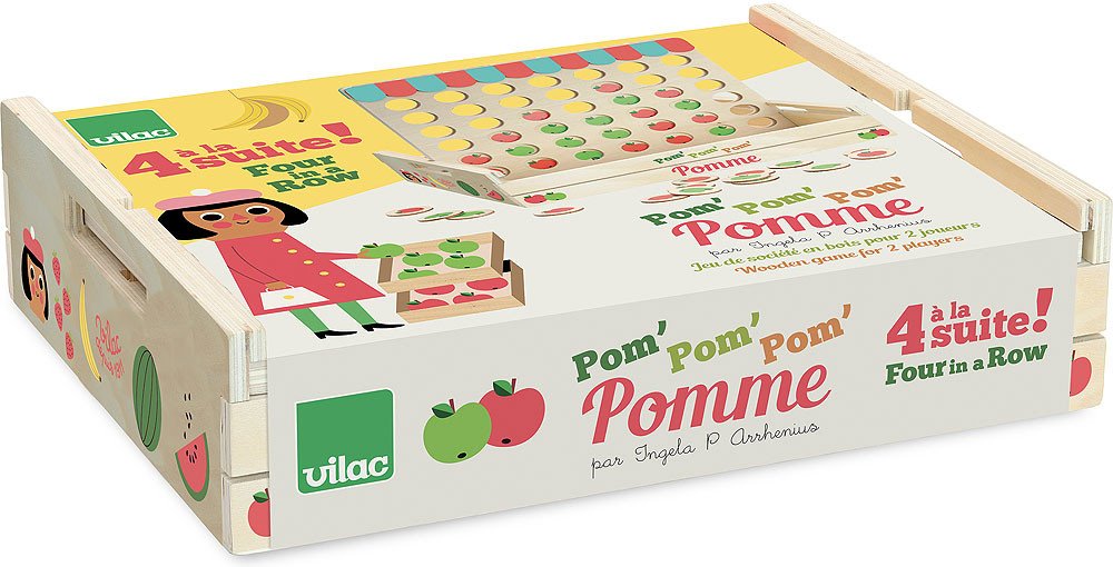 Design Ingela P. Arrhenius Dřevěné piškvorky s červenými a zelenými jablíčky. Můžete je hrát doma nebo na cestách. Dokážete vyhrát? Stačí vytvořit po sobě jdoucí řadu 4 jablek stejné barvy v řadě. Vhodné od 5 let. Hlavní vlastnosti: praktické na cestydesign Ingela P. Arrheniuspro dva hráče Dokumentace:Návod ke hře Dřevěné cestovní piškvorky (CZ)Návod ke hře Dřevěné cestovní piškvorky (SK) Zkrácený návod hry:Cílem hry je vytvořit po sobě jdoucí řadu (horizontální, vertikální nebo diagonální) nejméně 4 kamenů v hráčově barvě. Hráči se na tahu střídají, vhazují herní kameny do sloupce dle jejich výběru. Pokud je sloupec prázdný, spadne kámen úplně dolů. Pokud už ve sloupci nějaký kámen je, nově vhozený spadne na něj. Pokud je sloupec plný, není již možné vhodit další kameny. Jakmile vhodíte kámen do sloupce, má se tento za zahraný – již jej nemůžete ze sloupce odebrat. Vítězí hráč, který jako první vytvoří řadu 4 kamenů ve své barvě. Švédská umělkyně Ingela Peterson Arrhenius se narodila v roce 1967. Umění a design měly vždy místo v jejím životě a než začala její kariéra ilustrátorky, Ingela pracovala jako umělecká vedoucí ve Stockholmu. Poté studovala reklamní a grafický design na umělecké škole také ve Stockholmu. V roce 1992 začala podnikat jako ilustrátorka na volné noze a pracovala mezinárodně napříč reklamou, designem, nakladatelstvím… V minulosti vytvářela tiskové vzory pro tkaniny, tapety, papírnictví, také pracovala na obalech, produktovém designu, bytových doplňcích a hračkách. Její plakáty a designové hračky najdete po celém světě. Má vášeň pro retro styl, což je jasně vidět na jejich dílech a také v jejím nadšení pro typografii a barvy. Nyní žije ve Stockholmu s manželem a 2 syny.